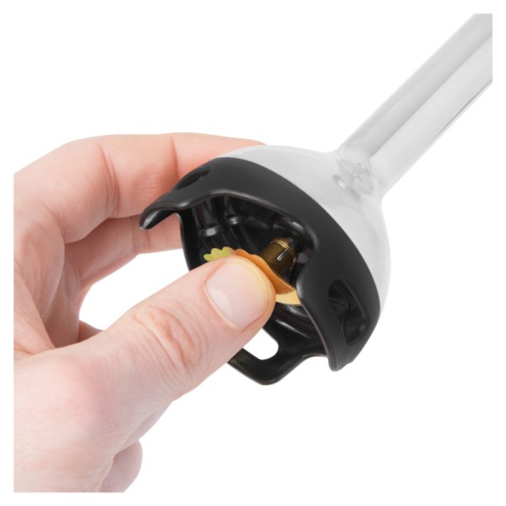 Цей блендер оснащено кількома насадками, серед яких ніж для подрібнення, насадка-вінчик і насадка-блендер. Такий багатий комплект робить його ідеальним для збивання, подрібнення та змішування. Спеціально розроблений мірний стакан об'ємом 0.6 л допомагає точно відміряти інгредієнти, завдяки чому ви зможете легко приготувати ідеальні коктейлі чи соуси.