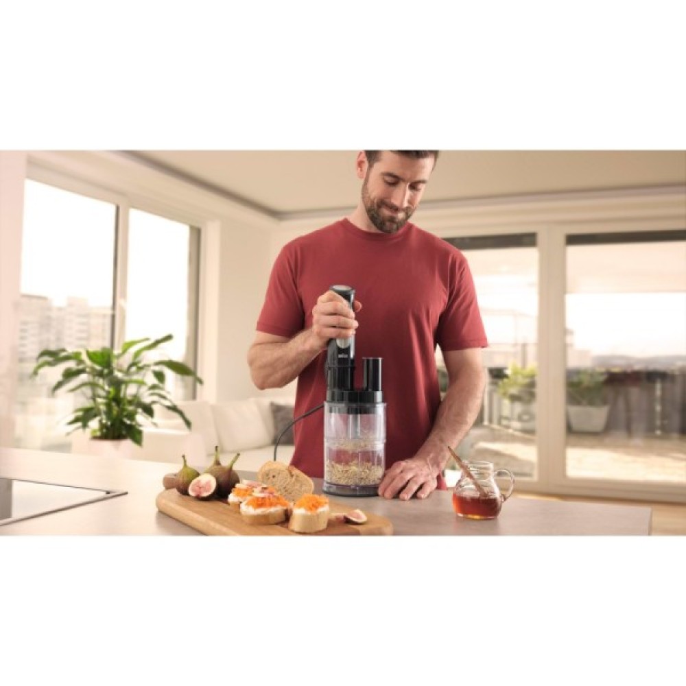 Оснащений подрібнювачем об'ємом 500 мл, цей блендер дозволяє точно налаштувати розмір подрібнення завдяки диску SizeControl. Немає значення, що ви готуєте – пасту, соус чи молочний коктейль, – ви завжди досягнете ідеальної консистенції.