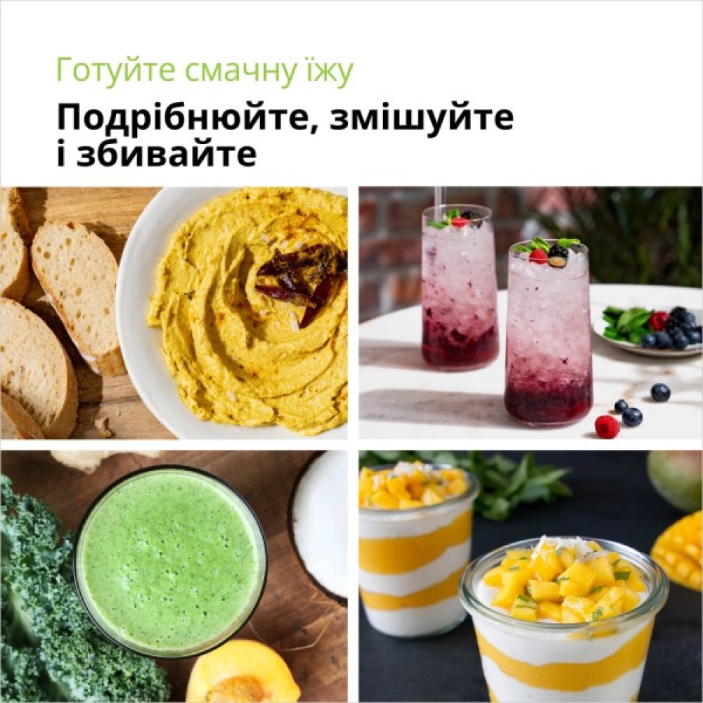 Основною перевагою цього блендера є його потужність 1000 Вт, яка дозволяє легко справлятися з будь-якими завданнями – від замішування тіста до приготування смузі з твердих інгредієнтів. Завдяки системі EasyClick Plus, зміна насадок відбувається швидко та зручно, що робить процес роботи ще простішим і приємнішим.