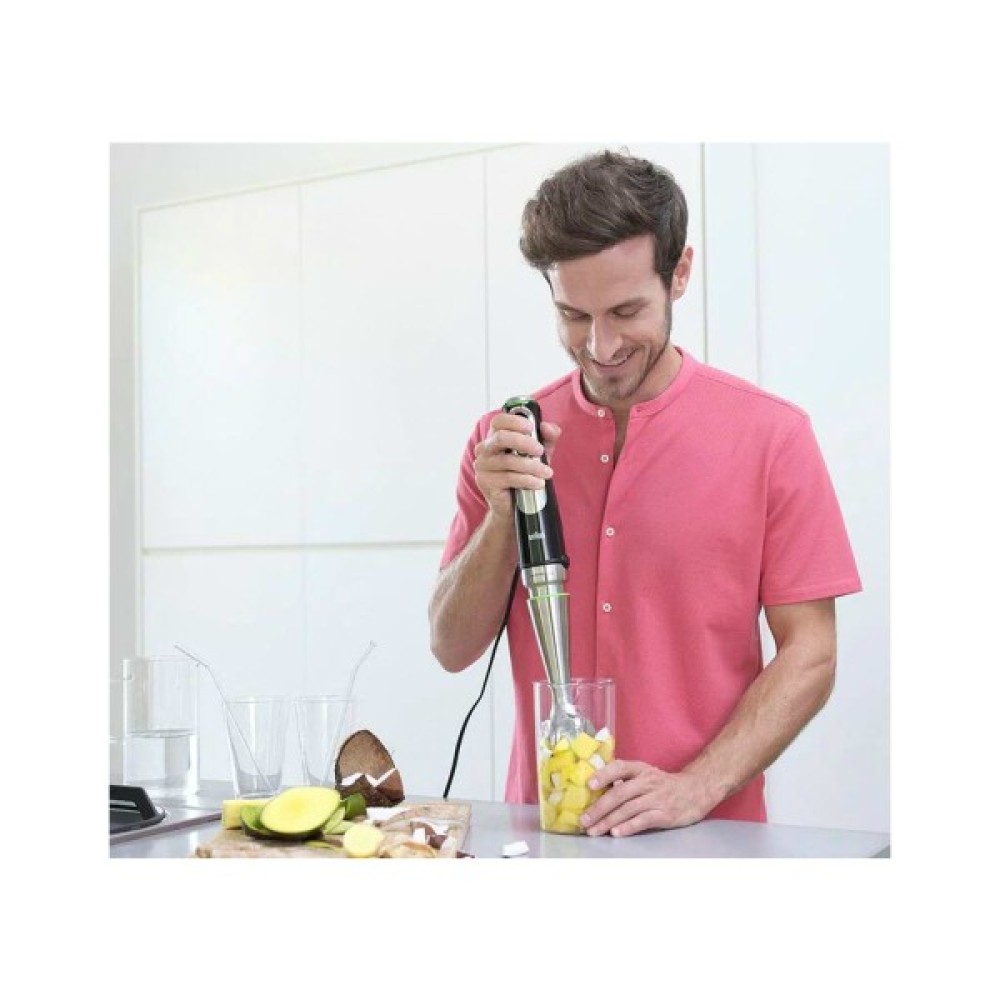 Особлива увага приділена контролю за чистотою під час використання. Із запатентованою системою SplashControl, конструкція ніжки уникне небажаного розбризкування навіть на високих швидкостях. Леза з нержавіючої сталі, створені за технологією ActiveBlade, без особливих зусиль впораються навіть з найтвердішими продуктами, а технологія PowerBell Plus створює підвищену ефективність всмоктувального ефекту навколо лез.