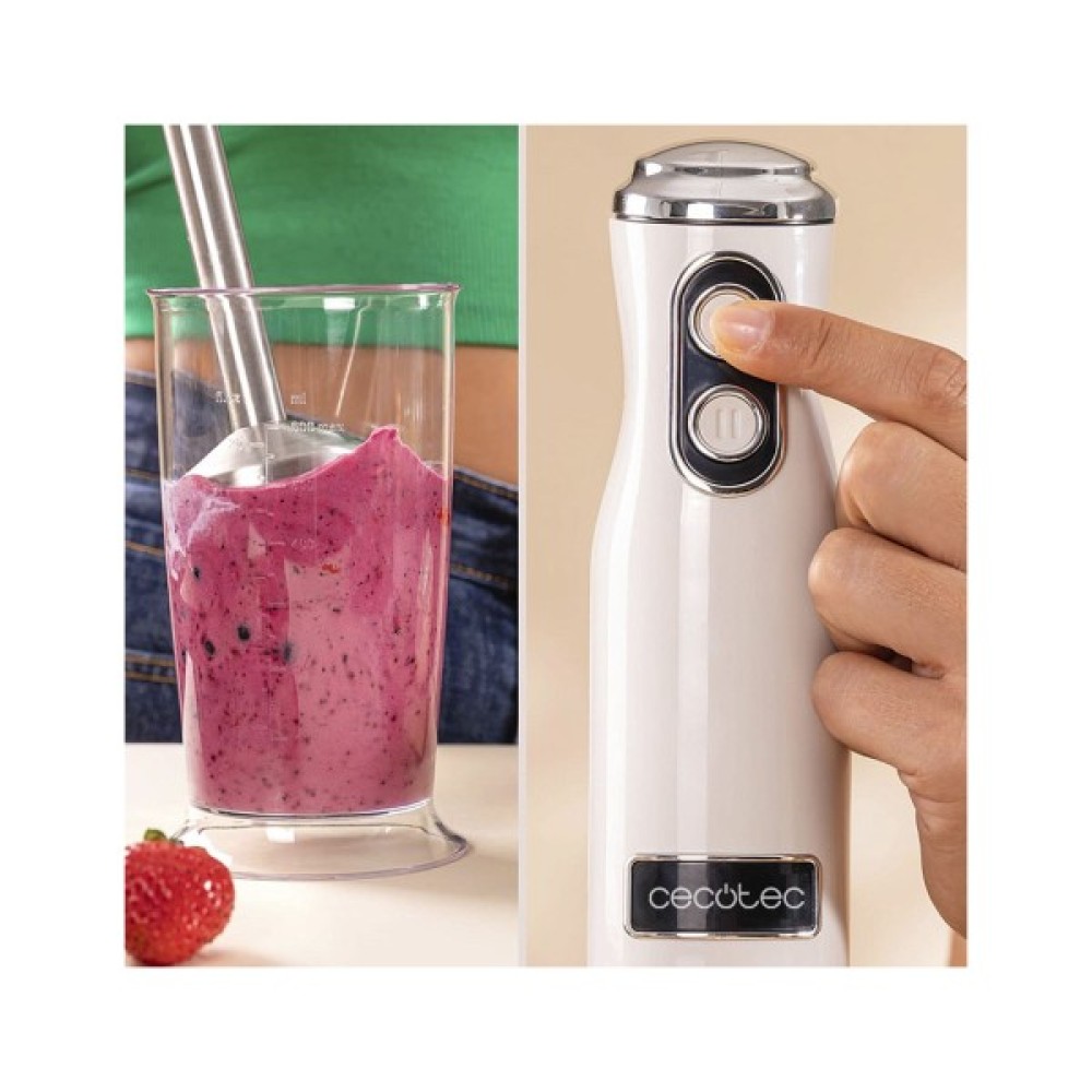Комбінуйте використання блендера Cecotec, отримуйте найкращі креми та текстури завдяки досить великому набору аксесуарів у комплекті. Склянка, віночок та подрібнювач забезпечує максимальну зручність та практичність на Вашій кухні.