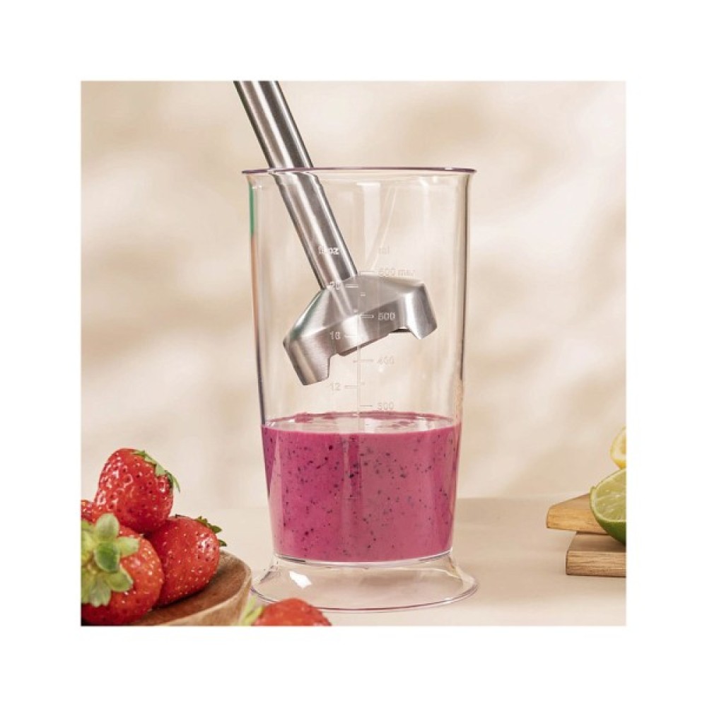 Насолоджуйтесь ідеальною кількістю кремів та смузі завдяки великій склянці ємністю 0,5 літра. Крім того, склянку можна мити в посудомийній машині, що забезпечує зручне та легке очищення.