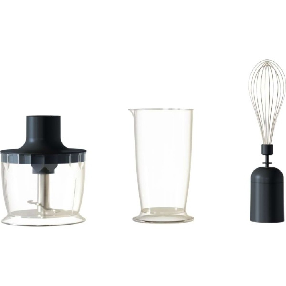 Комплект аксесуарів здивує своєю універсальністю. В комплект входять мірний стакан на 0.7 л та міні-подрібнювач об'ємом 500 мл, що дозволяє готувати різноманітні страви, від смузі та соусів до гуакамоле і нарізаних овочів. Металева ніжка блендера гарантує довговічність і високу стійкість до зношування, що особливо актуально для щоденної кухонної рутини.