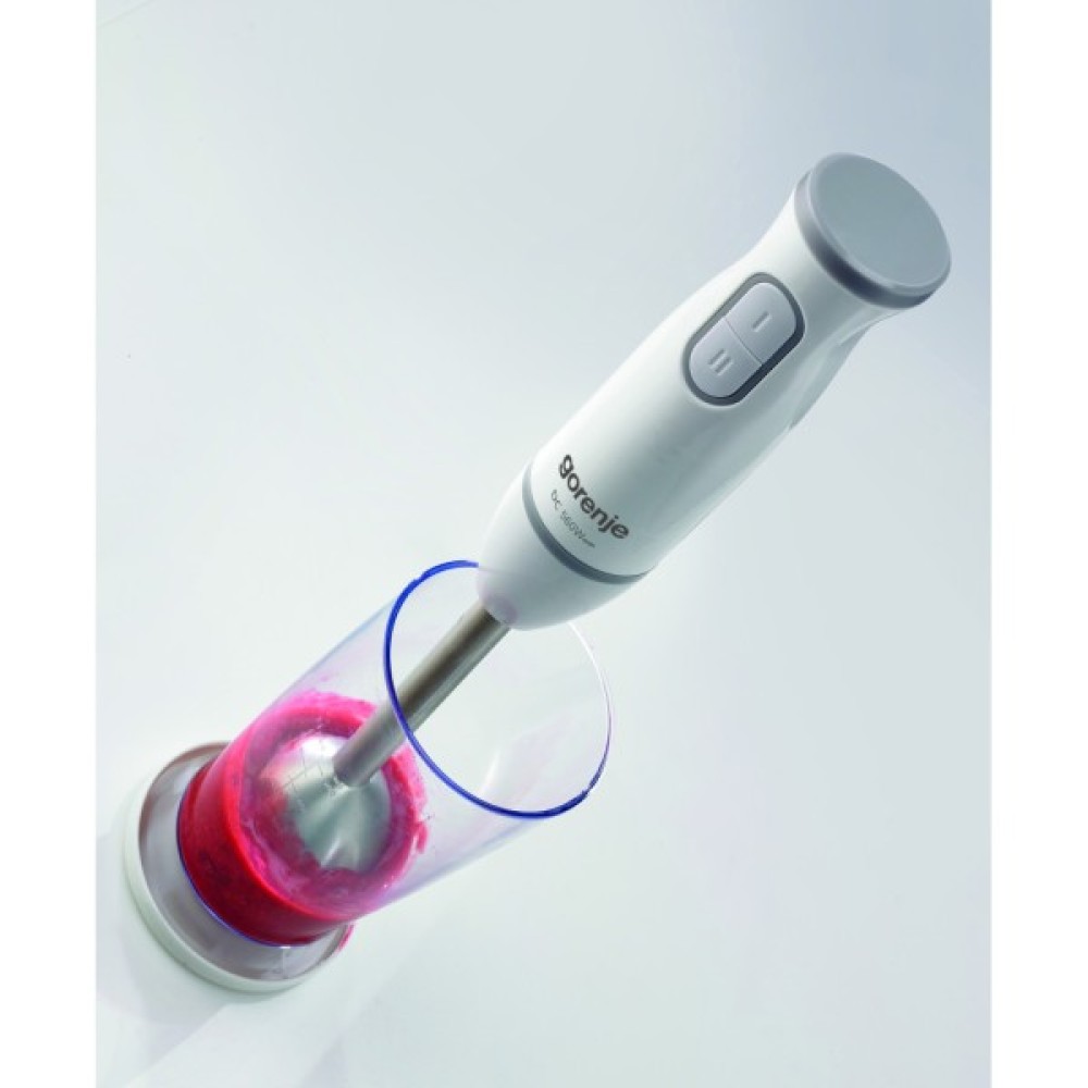 Блендер Gorenje HBC561QW має елегантний білий колір, що легко вписується в інтер’єр будь-якої кухні. Пристрій вагою всього 0,6 кг легко зберігати і транспортувати, що робить його ідеальним вибором для кухнярів, які цінують комфорт і стиль.