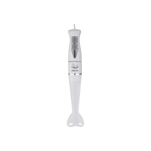 Блендер Grunhelm EBS-501Р – це незамінний помічник на кожній кухні, завдяки якому приготування улюблених страв стає швидким, легким та ефективним. Цей занурювальний блендер з потужністю 500 Вт відзначається своєю універсальністю та якістю, забезпечуючи ідеальне змішування різноманітних інгредієнтів. Стильний білий корпус виготовлений з високоякісного пластику, що надає приладу сучасного вигляду і підходить до будь-якого кухонного інтер'єру.