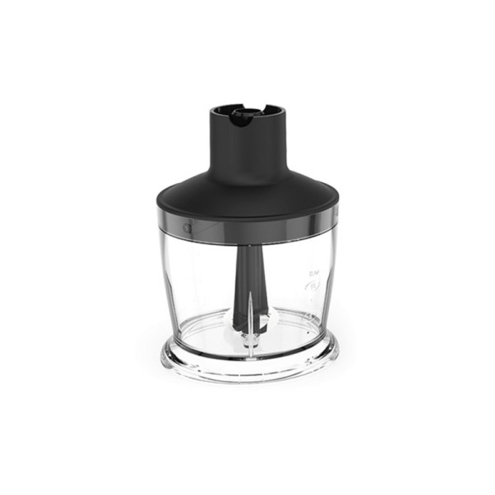 Комплект блендера містить всі необхідні елементи для приготування різноманітних страв. Вінчик для збивання забезпечить повітряність кремів і соусів, а міні-подрібнювач з ємністю 500 мл стане у пригоді для нарізки овочів, фруктів і навіть горіхів. Додаткова ємність, чопер, призначена для обробки більших обсягів продуктів, робить блендер багатофункціональним інструментом на кухні.