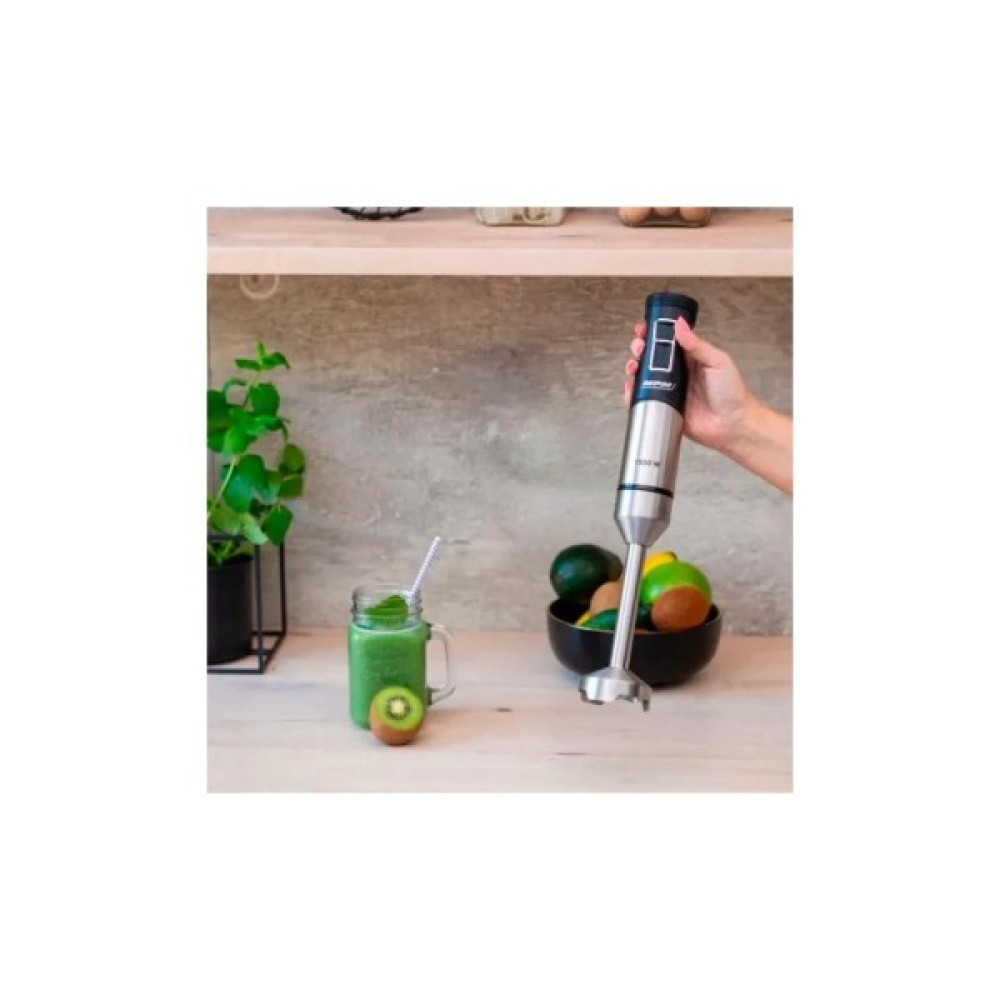 Блендер MPM MBL-33M - це ваш незамінний помічник на кухні, який здатний суттєво спростити процес приготування страв. Цей занурювальний блендер поєднує у собі високу продуктивність і компактність, завдяки чому його легко зберігати у шухляді або повісити на настінний гачок. Незалежно від того, готуєте ви поживний коктейль, бархатистий овочевий крем-суп або подрібнюєте цибулю чи часник, цей пристрій стане вашим вірним партнером.