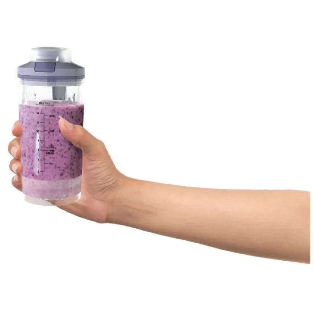 У комплект входить практична знімна чаша Twist & Go об’ємом 0.57 літра з герметичною кришкою та зручною ручкою, що дозволяє брати свіжоприготовлений напій з собою. Це забезпечує максимальну мобільність та зручність, адже спортивна пляшка, виконана з міцного пластику, легка та підходить для миття в посудомийній машині.