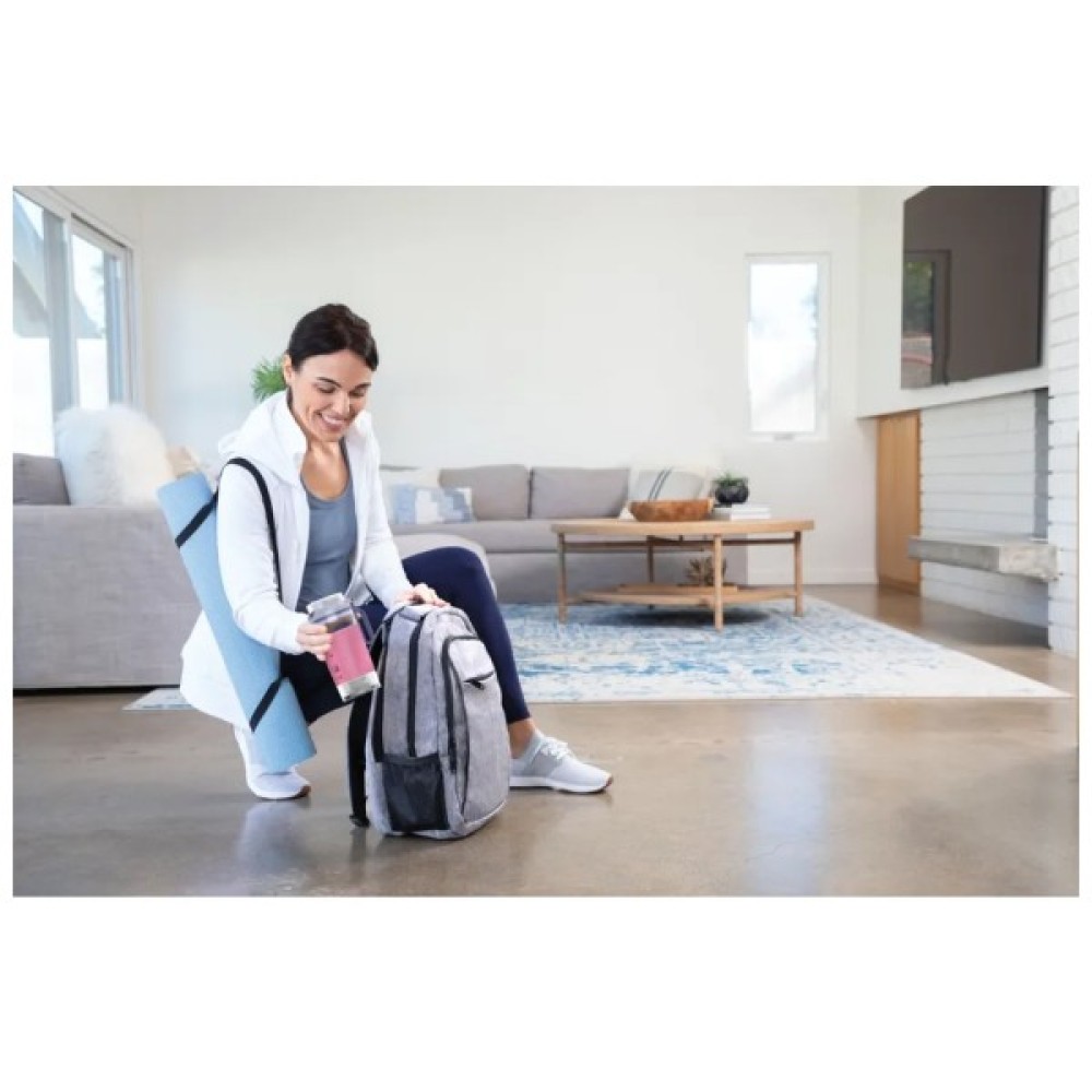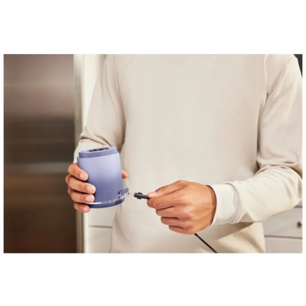 Блендер виділяється стильним фіолетовим дизайном, який додає яскравий акцент на вашій кухні або у спортивній сумці. Має компактні розміри 30 х 9 х 11,5 см і важить всього 1.2 кг, що робить його простим у транспортуванні та зберіганні.