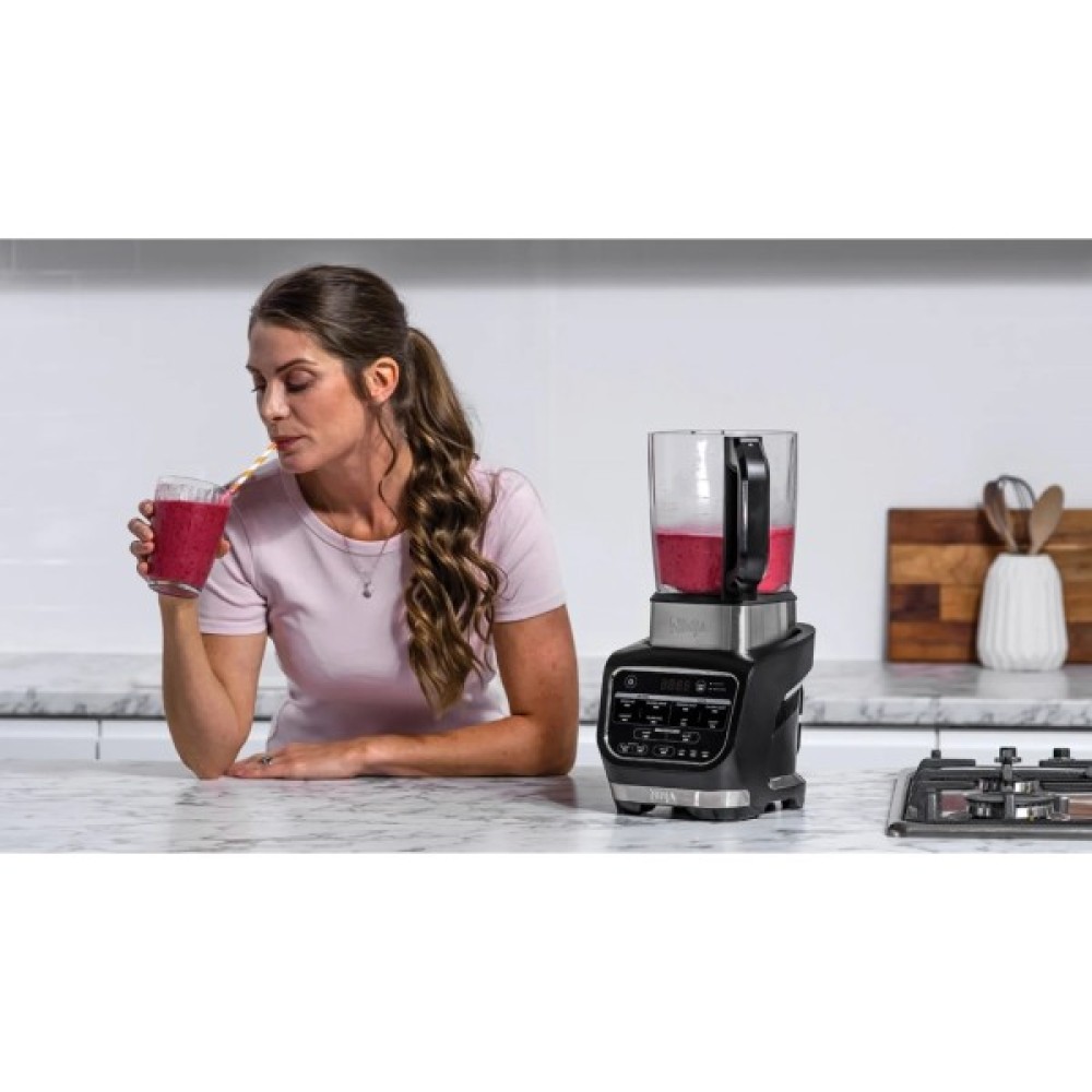 Блендер Ninja HB150EU - це ідеальний вибір для тих, хто прагне перетворити кухню на справжню лабораторію смаків. Завдяки своїй стаціонарній конструкції та потужності у 1000 Вт, цей блендер здатен швидко та ефективно справлятися з будь-якими завданнями, починаючи від подрібнення льоду до приготування гарячих страв.