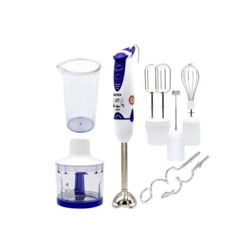 Комплект насадок включає насадку-вінчик, міксер з двома віночками, насадку для тіста, ніж для подрібнення, а також насадку-блендер. Ці насадки розширюють функціонал пристрою, дозволяючи не лише збивати білки та креми, але і замішувати тісто для ідеальної випічки. Завдяки мірній склянці об'ємом 0.6 літра, ви зможете точно дотримуватися пропорцій, зазначених у рецептах.