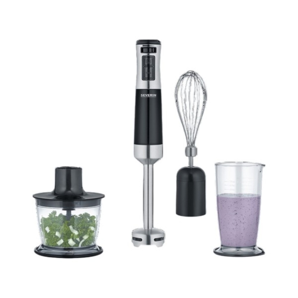 Блендер Severin SM 3772 — це сучасний помічник на вашій кухні, який поєднує в собі високу якість, практичність і стильний дизайн. Це занурювальний блендер, що має потужність 600 Вт, забезпечуючи швидке та ефективне змішування, подрібнення та збивання різноманітних інгредієнтів. Від супів-пюре до коктейлів, смузі і навіть десертів — цей блендер справляється на відмінно.