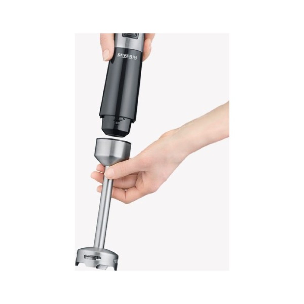 Завдяки ергономічному дизайну, Severin SM 3772 відзначається зручністю у використанні. Його м'яка ручка розроблена для комфортного тримання, ідеально лягаючи в руку. Металева ніжка з нержавіючої сталі не тільки додає блендеру міцності, але й полегшує процес очищення, оскільки її можна мити як під проточною водою, так і в посудомийній машині.