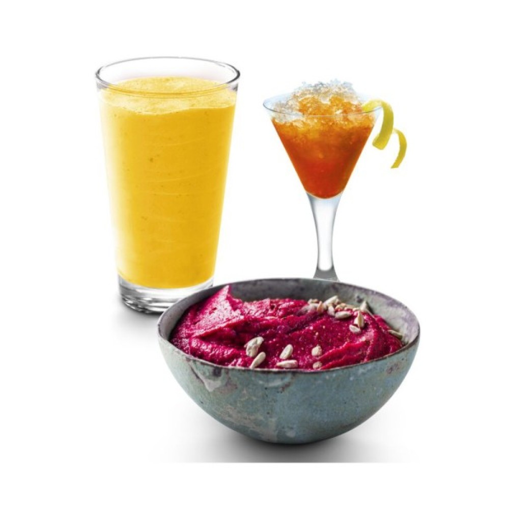 Блендер поставляється із чашею подрібнювача місткістю 1500 мл, що вміщує велику кількість продуктів, і ніжем для подрібнення, що забезпечує відмінну якість нарізання і змішування. Блендер має два режими роботи – режим смузі й режим льоду, які можна швидко обрати, забезпечуючи оптимальні умови для приготування різних продуктів.