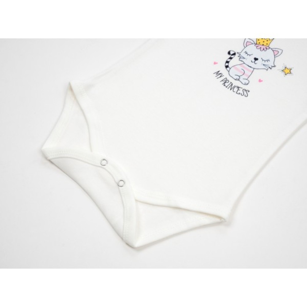 ● Боді на грудях прикрашений принтовим малюнком кішечки в короні та написом «MY PRINCESS».