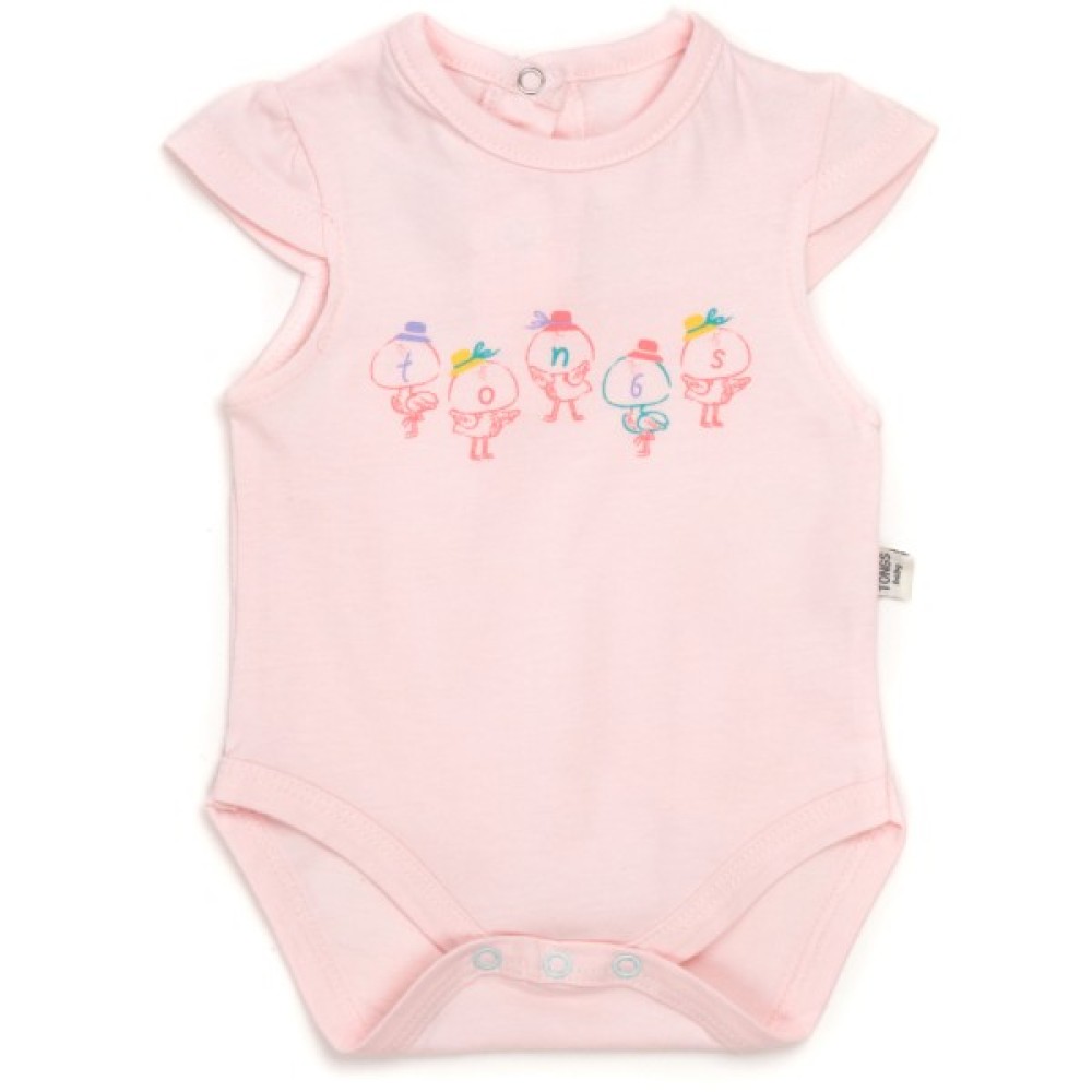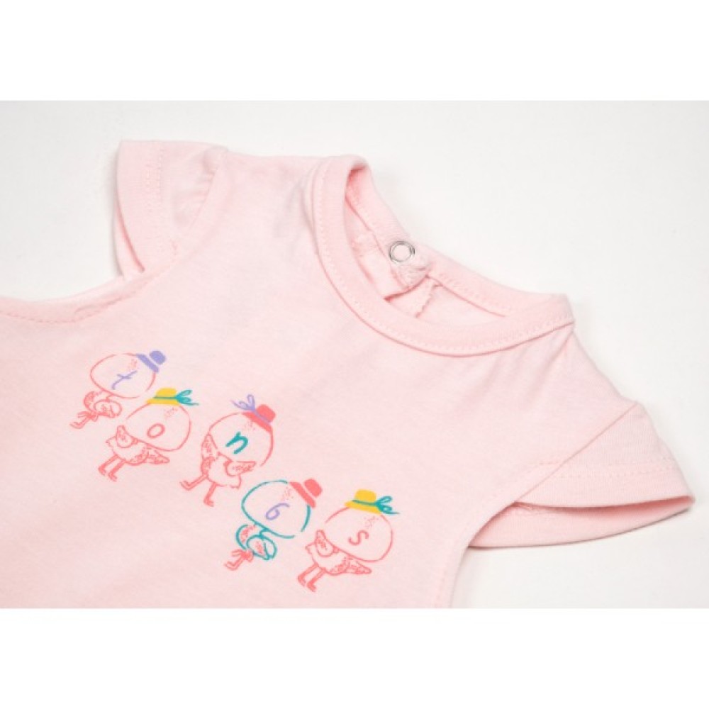 Затишна модель у двох відтінках рожевого кольору. Легко і швидко знімається і надягається завдяки застібці на кнопочки внизу боді, що дуже зручно і мамі, і малюку для швидкої зміни підгузка.