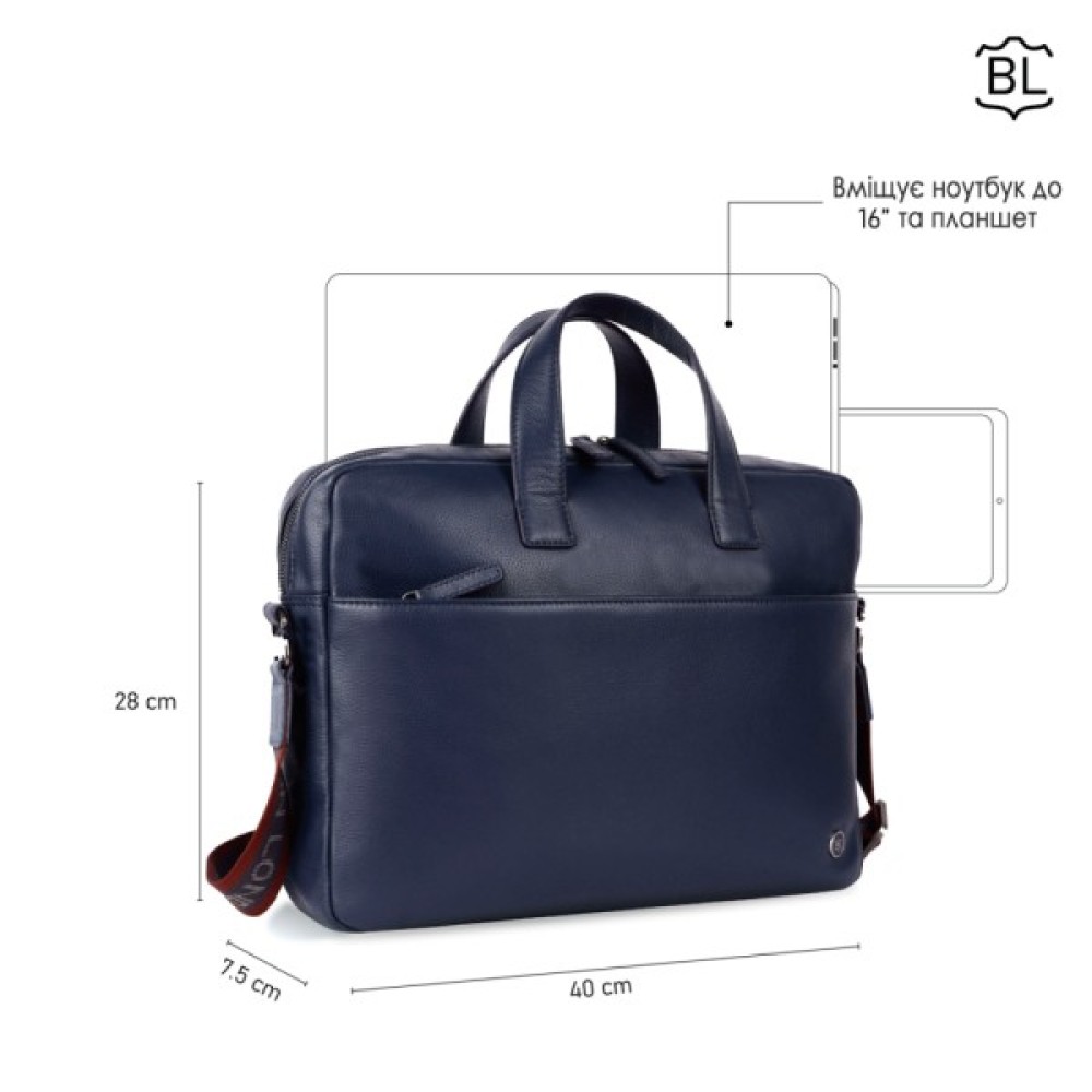 матова; текстильний регульований незнімний ремінець на праве або ліве плече; кишеня на блискавці, на лицьовій стороні; кишеня відкритого типу на лицьовій стороні; для ноутбука