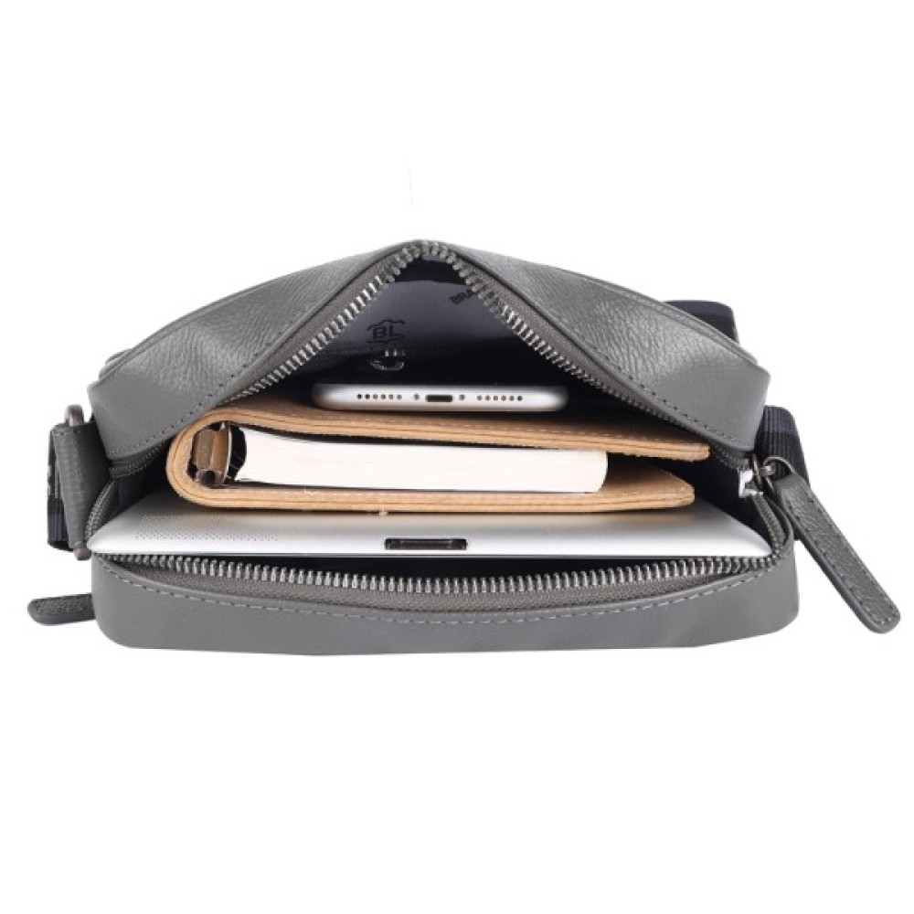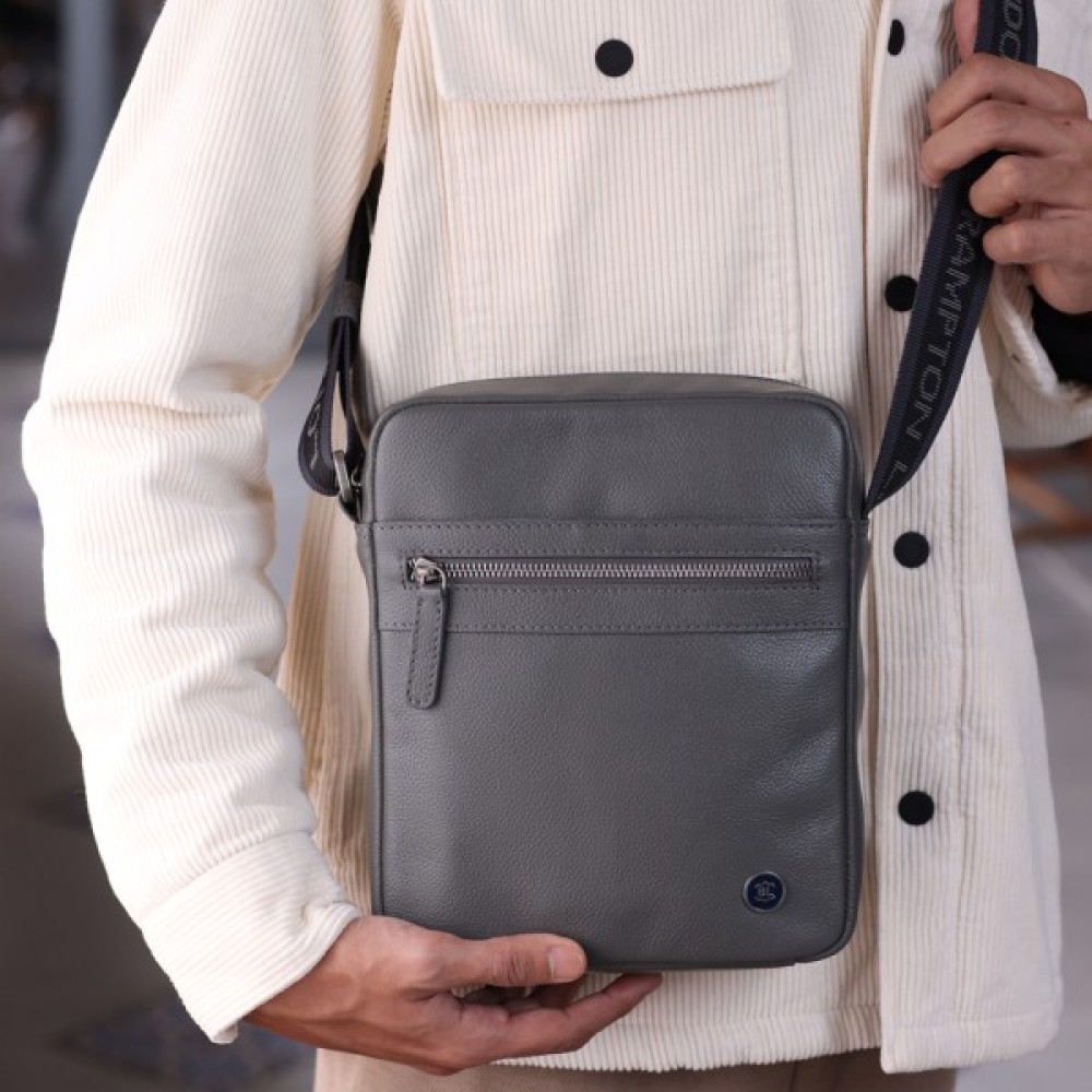 Сумка Brampton London Crossflow Grey — це стильна і зручна модель для чоловіків, які обирають якість, функціональність і мінімалізм. Виготовлена з натуральної матової шкіри у стриманому сірому кольорі, вона пасує як до ділового образу, так і до повсякденного стилю. Завдяки двом зовнішнім кишеням, компактному розміру та регульованому ременю сумка стане незамінною в місті або у поїздці.