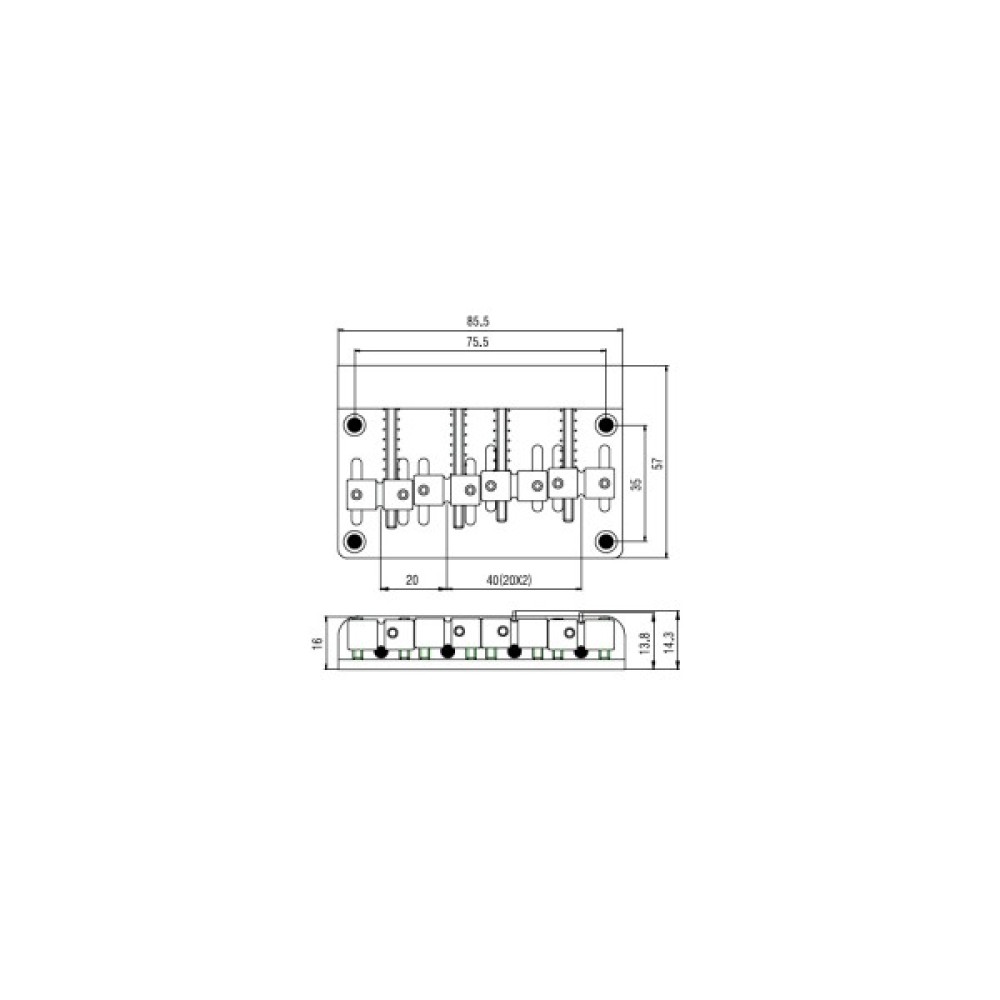 - Відстань між струнами - 20 мм