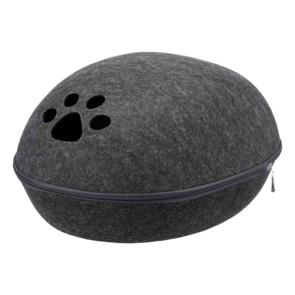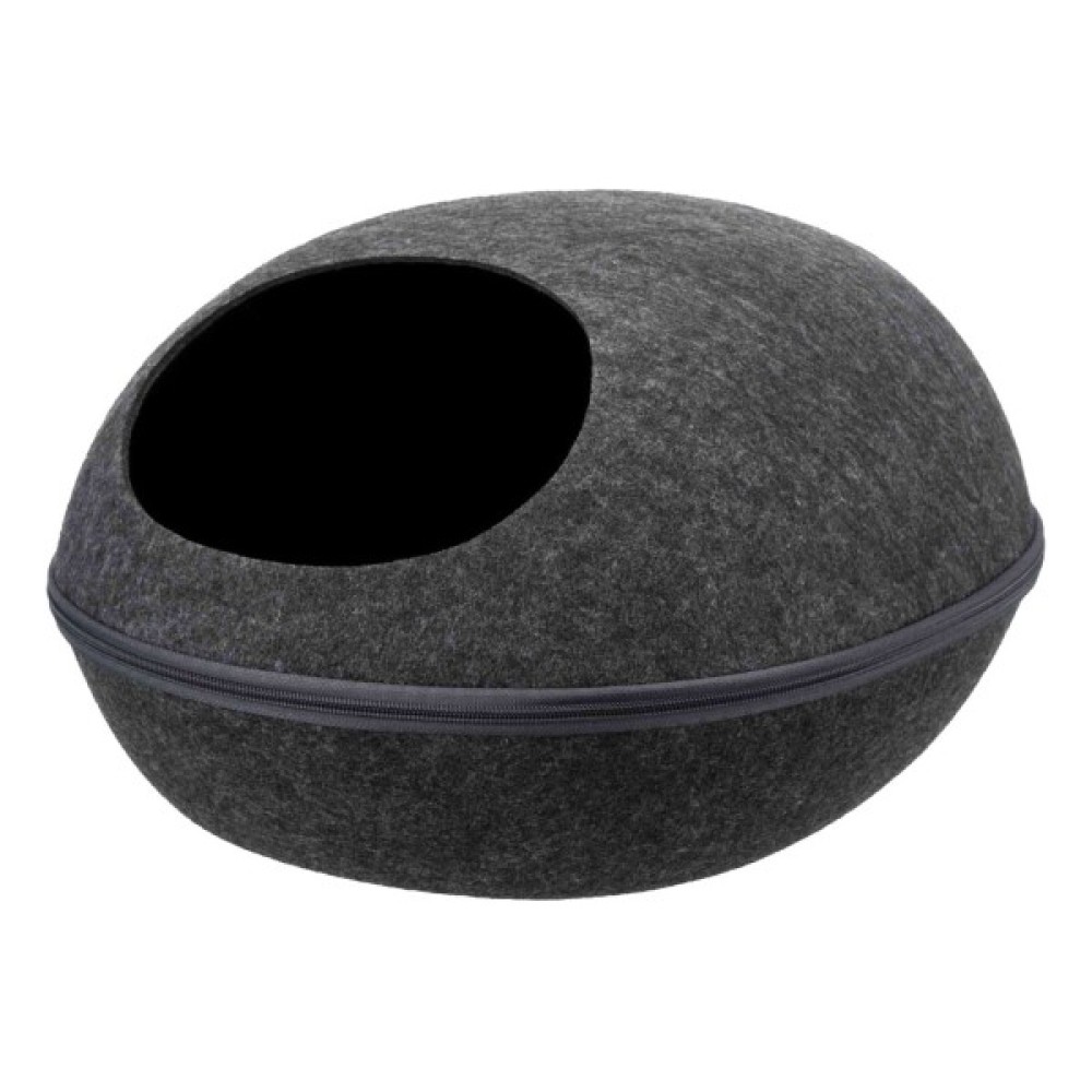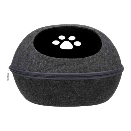 Будиночок-лежак Liva Cave представлений компанією Trixie, виготовлений зі штучного войлоку, який прекрасно тримає форму, ідеально підходить для кішок та собак дрібних порід. Форма будиночка досить закрита для того, щоб улюбленець відчував себе комфортно всередині, але при цьому -простора. Конструкція моделі складається з двох частин, які поєднуються між собою завдяки круговій блискавці. Також їх можна повністю розділити для зручності в прибиранні та зберіганні. Всередині розташований стьобаний лежак з плюшу і флісового наповнювача. Крім того, лежак має ізоляційне і грязевідштовхуюче покриття, що разом гарантують довговічність і стійкість до подряпин.