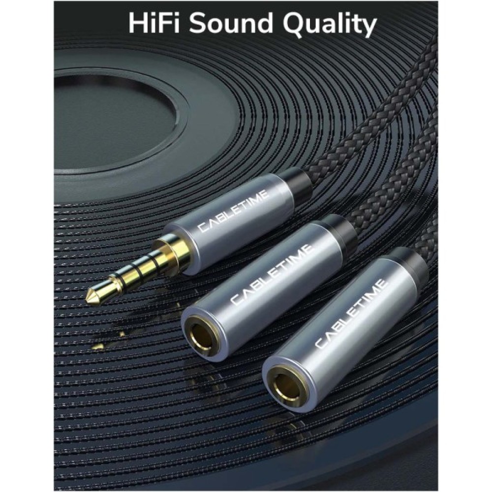 Кабель мультимедійний 3.5mm M to 2x3.5mm F 0.2m Cabletime (CA915248)
