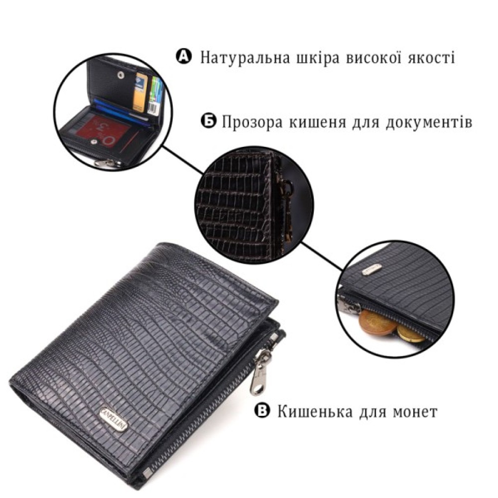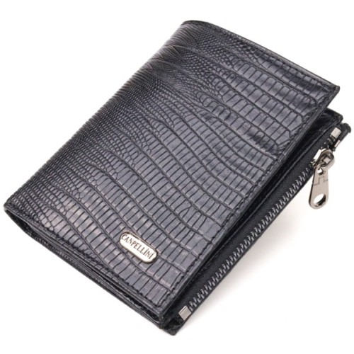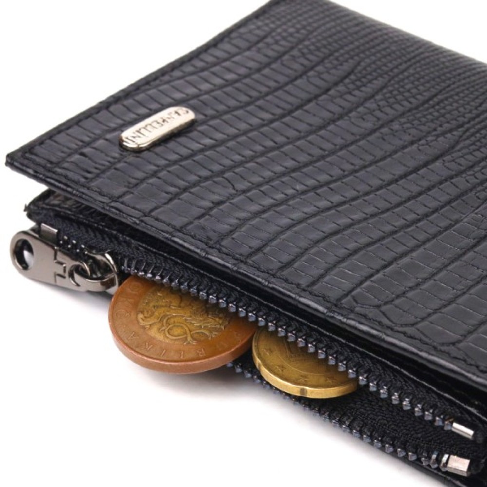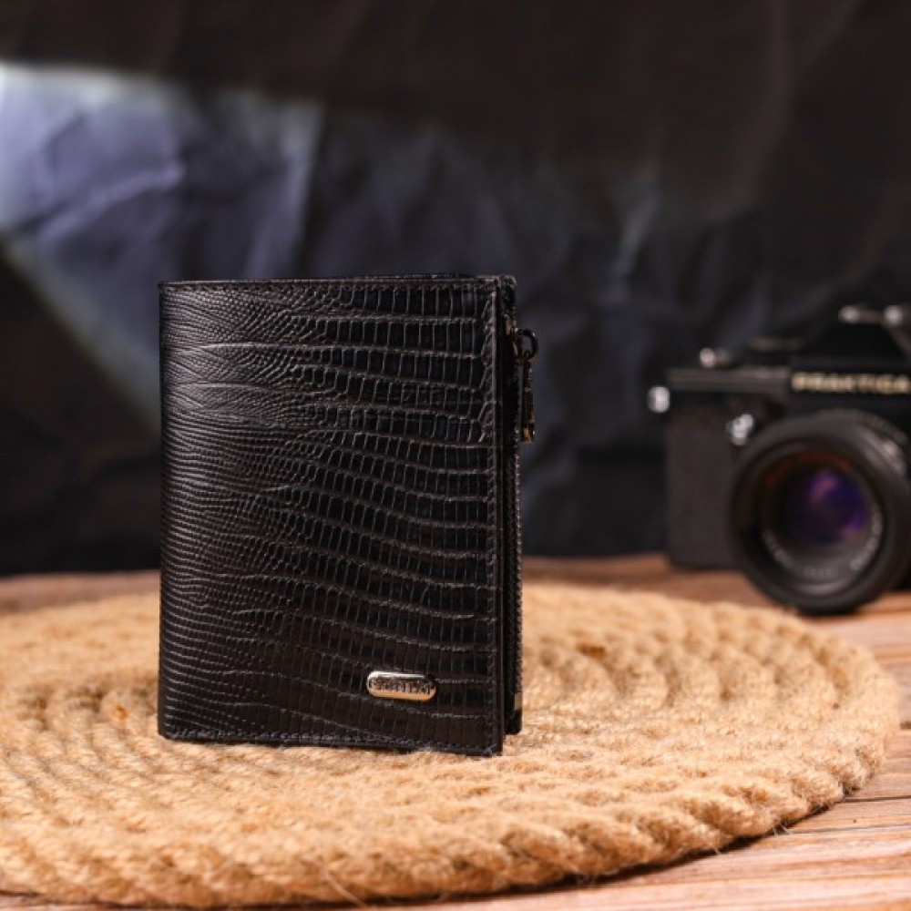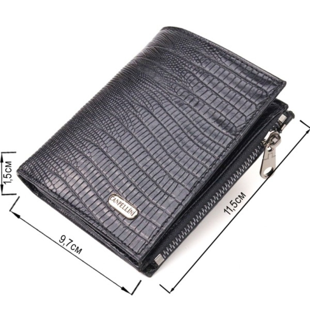 Стильний гаманець унісекс компактного розміру з натуральної шкіри з тисненням під рептилію.