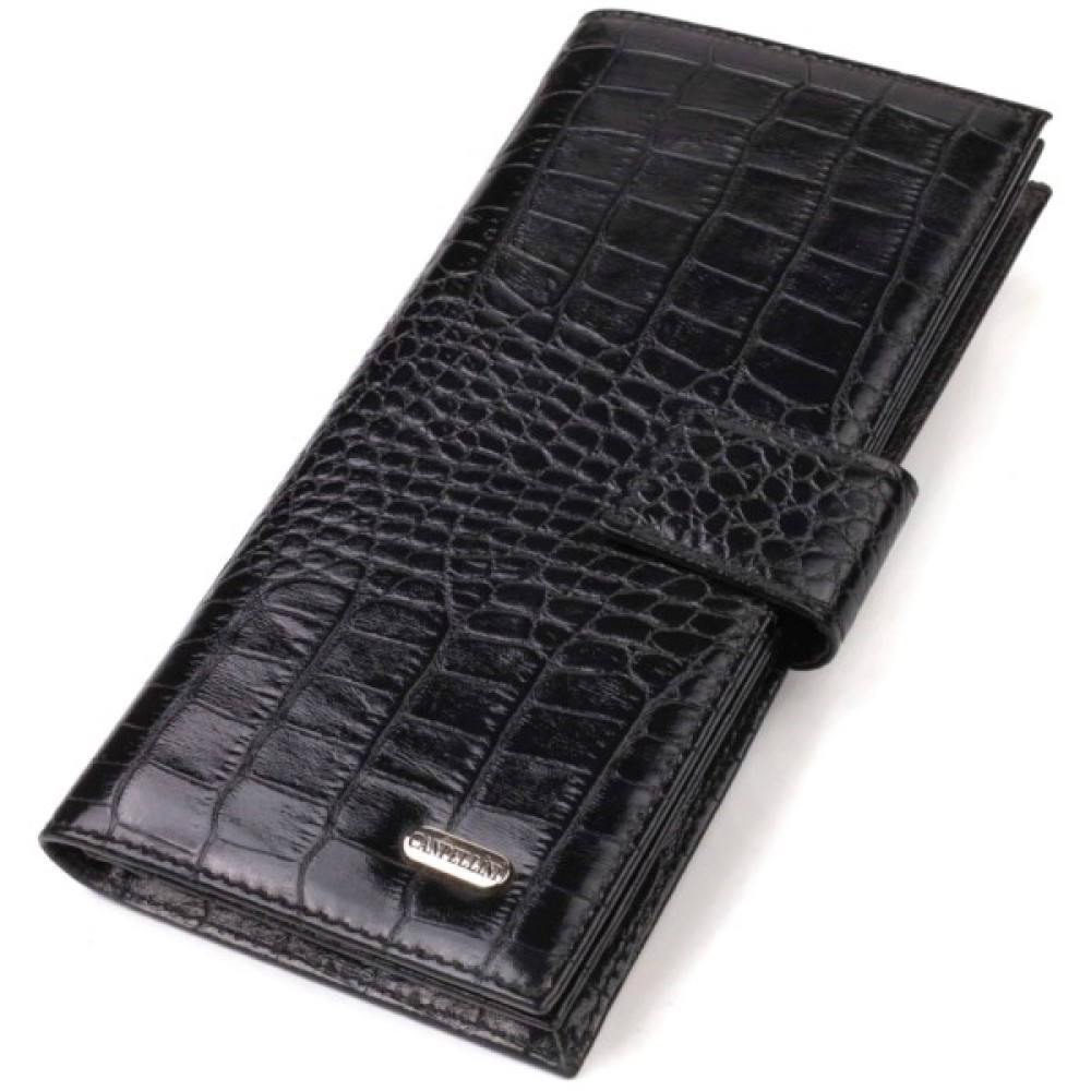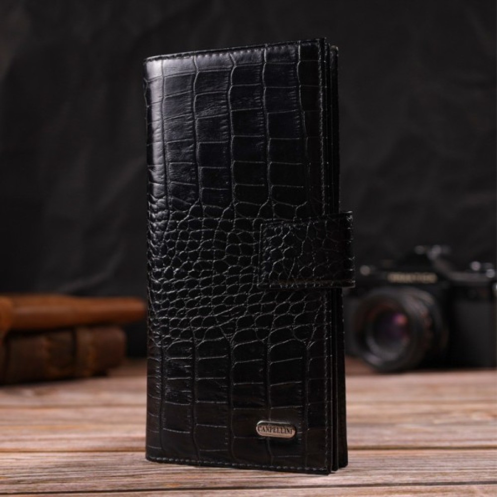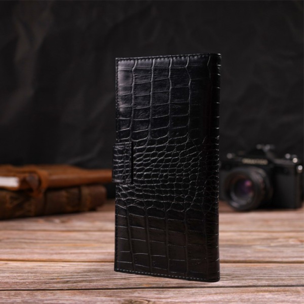 Сучасний чоловічий гаманець із натуральної фактурної шкіри з тисненням під крокодила.
