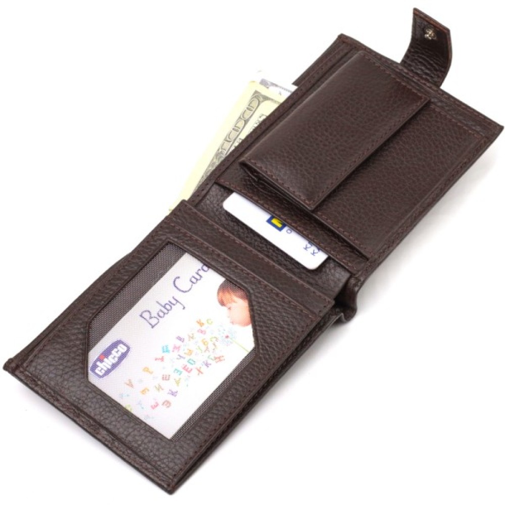 Надійний чоловічий гаманець середнього розміру із натуральної зернистої шкіри флотар.