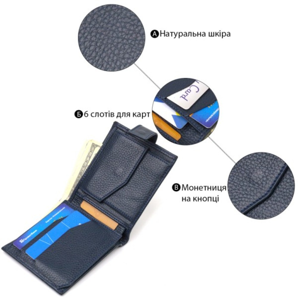 Аксесуар має всі необхідні відділення для зручного використання: купюри, картки, пропуск чи монети.