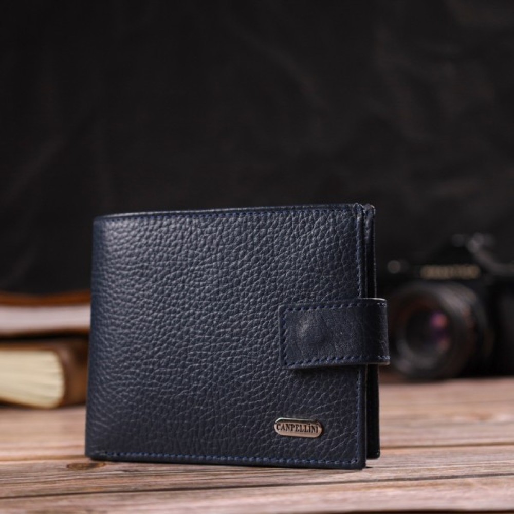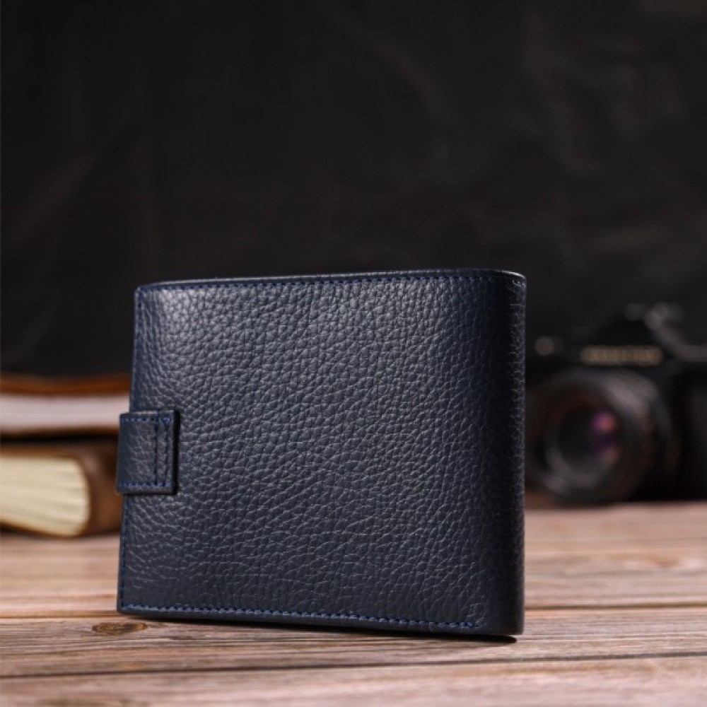 Цікавий чоловічий гаманець компактного розміру, виготовлений із натуральної зернистої шкіри.
