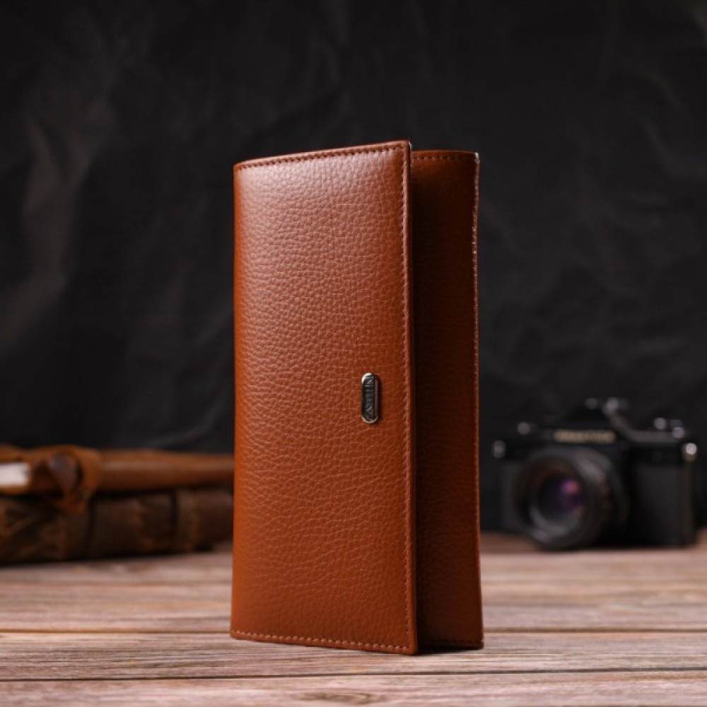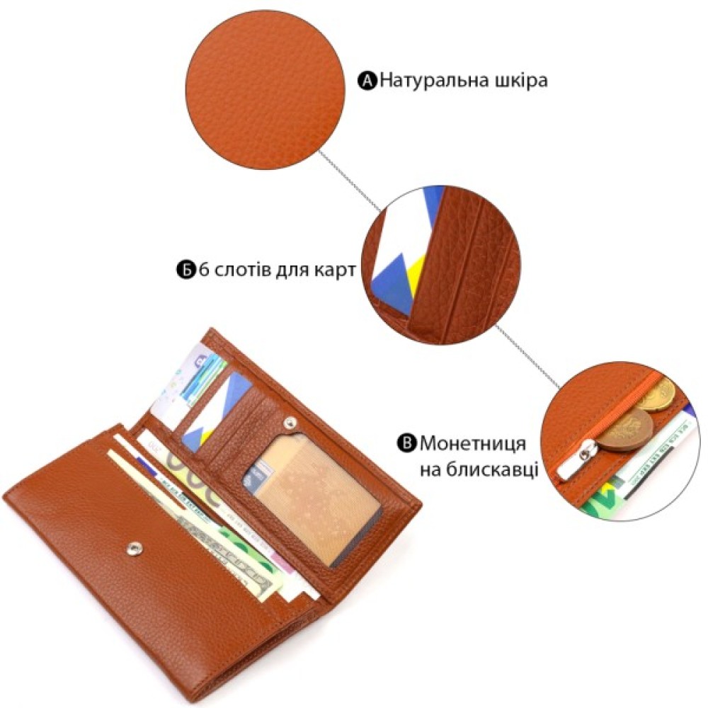 Чудовий жіночий гаманець горизонтального типу із натуральної зернистої шкіри.