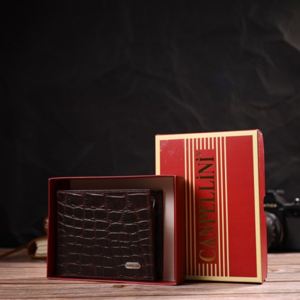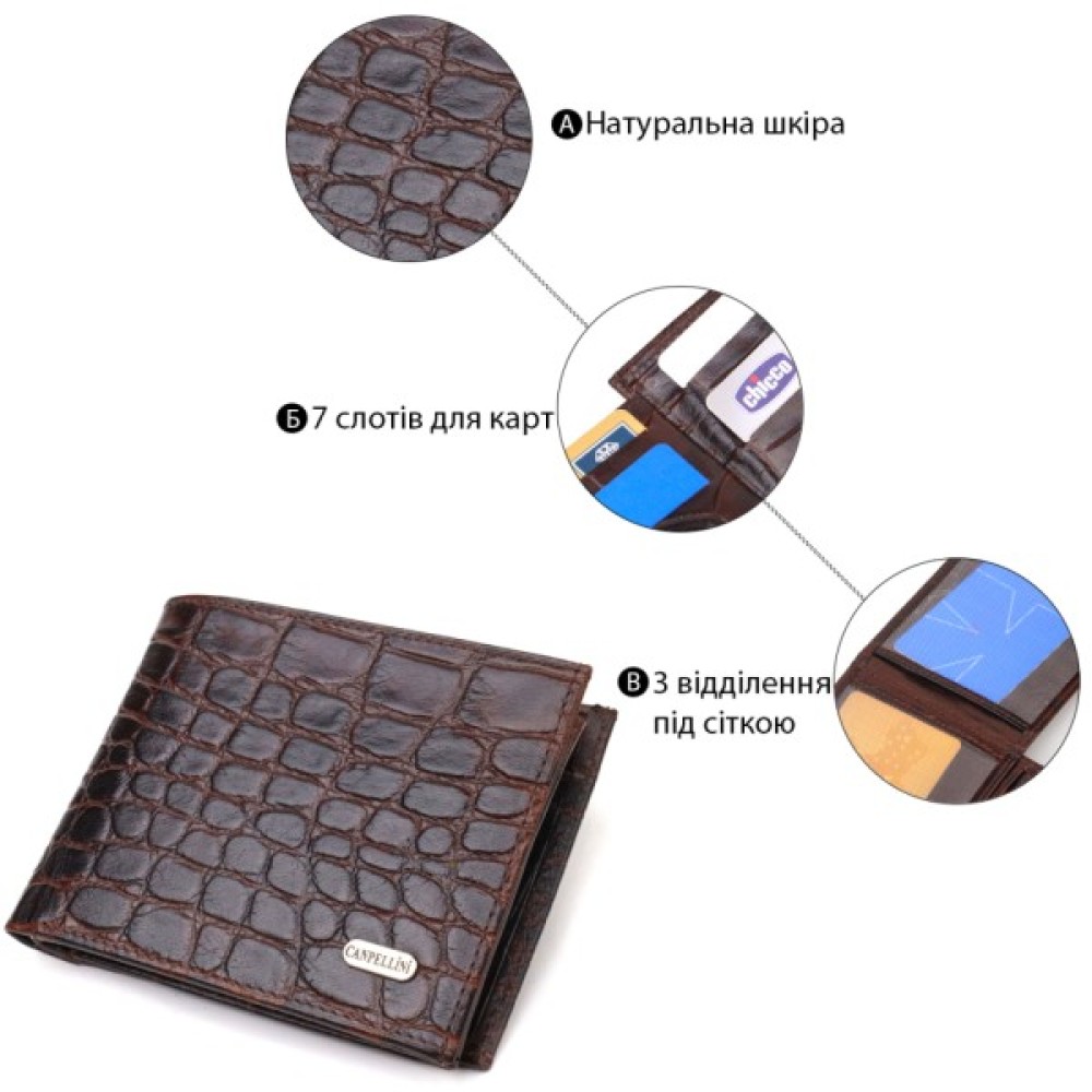Якісний і приємний на дотик чоловічий гаманець із натуральної шкіри з тисненням під крокодила.