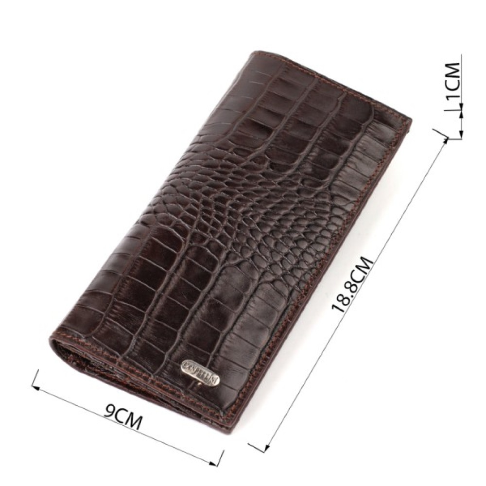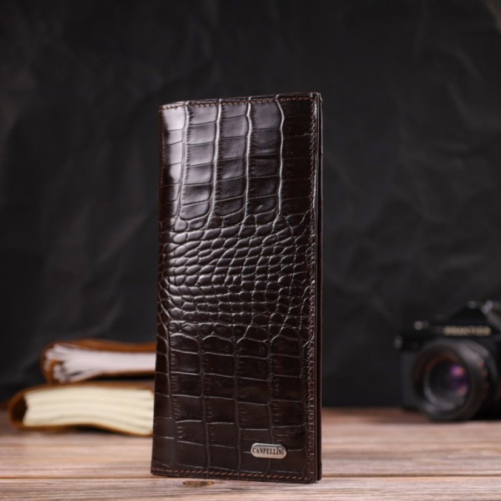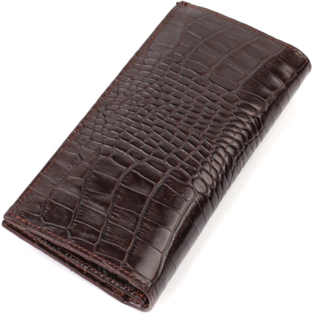 Вертикальний вузький чоловічий гаманець із натуральної шкіри з тисненням під крокодила.