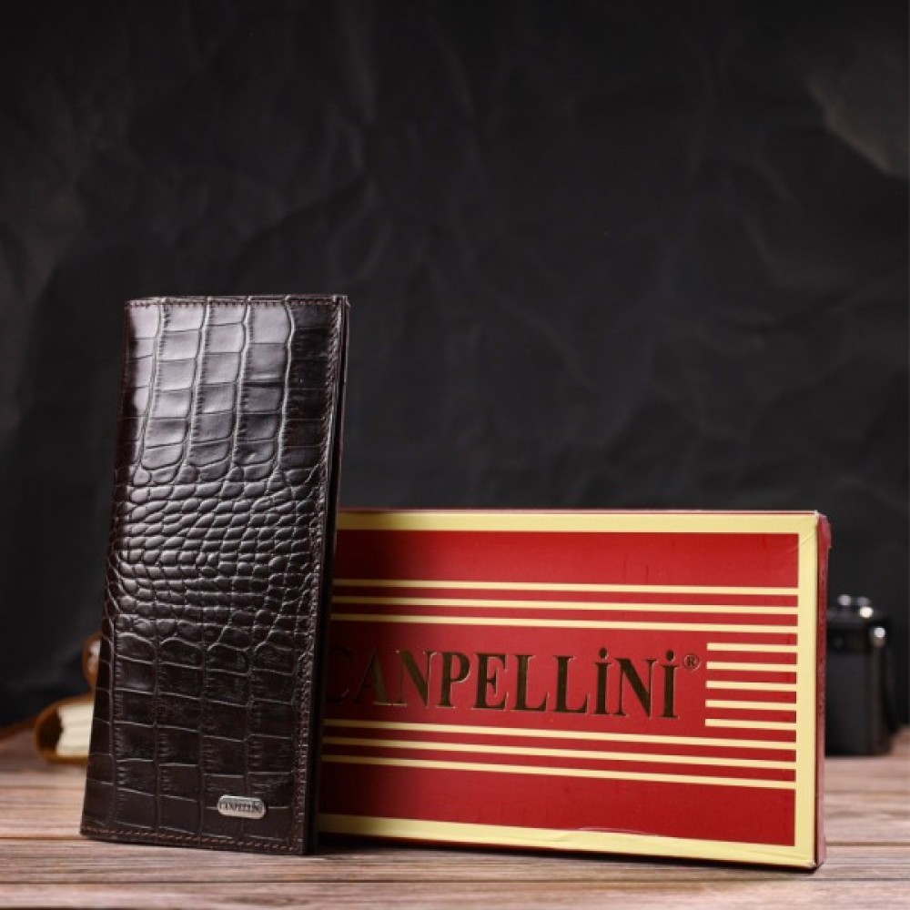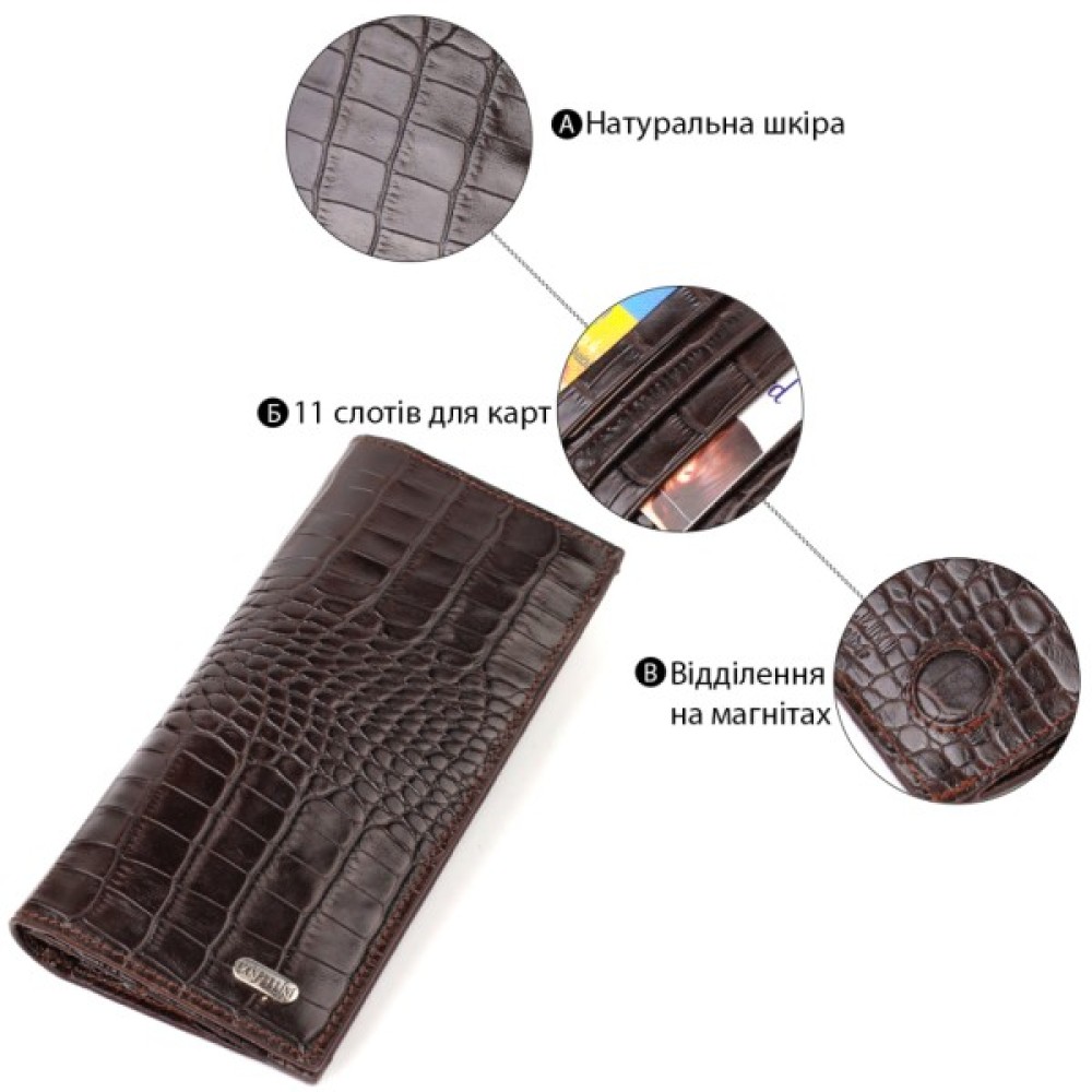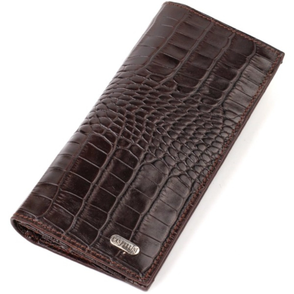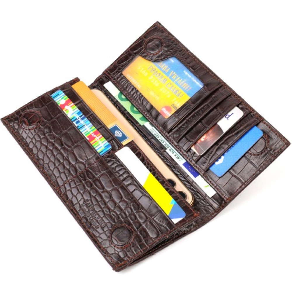 Вертикальний вузький чоловічий гаманець із натуральної шкіри з тисненням під крокодила.