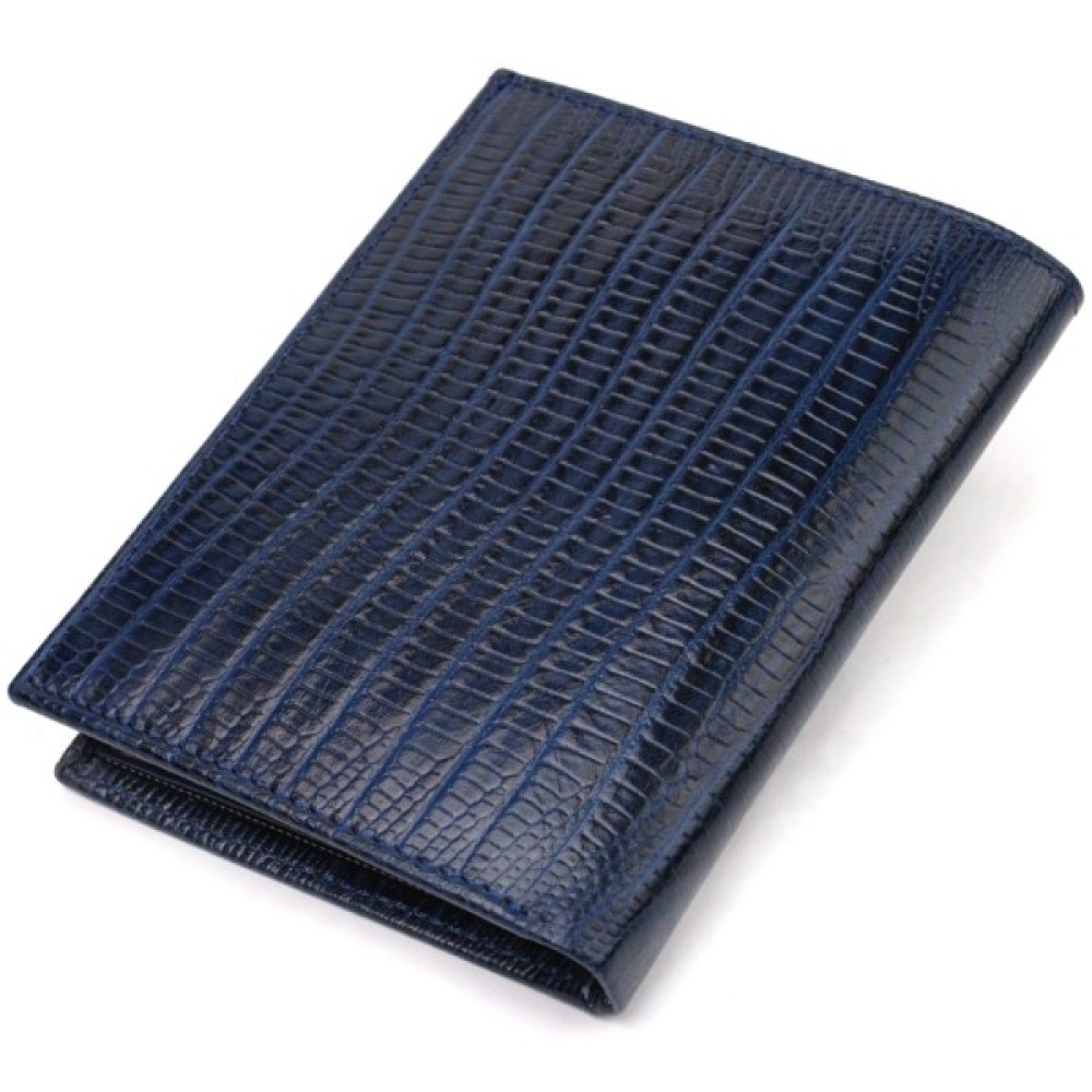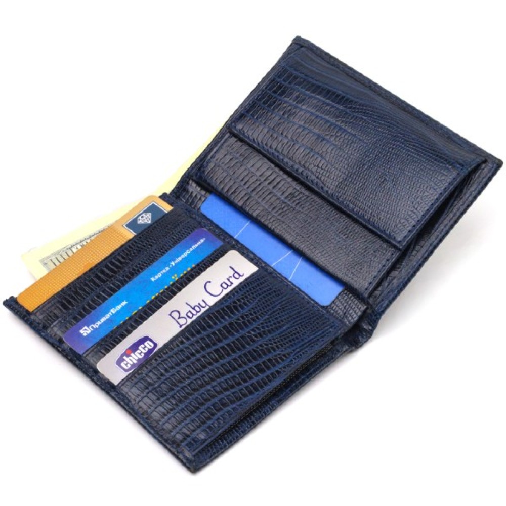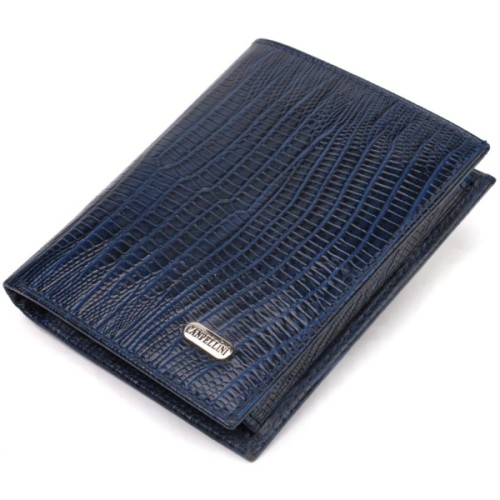Лакований чоловічий гаманець у красивому синьому кольорі з натуральної фактурної шкіри.