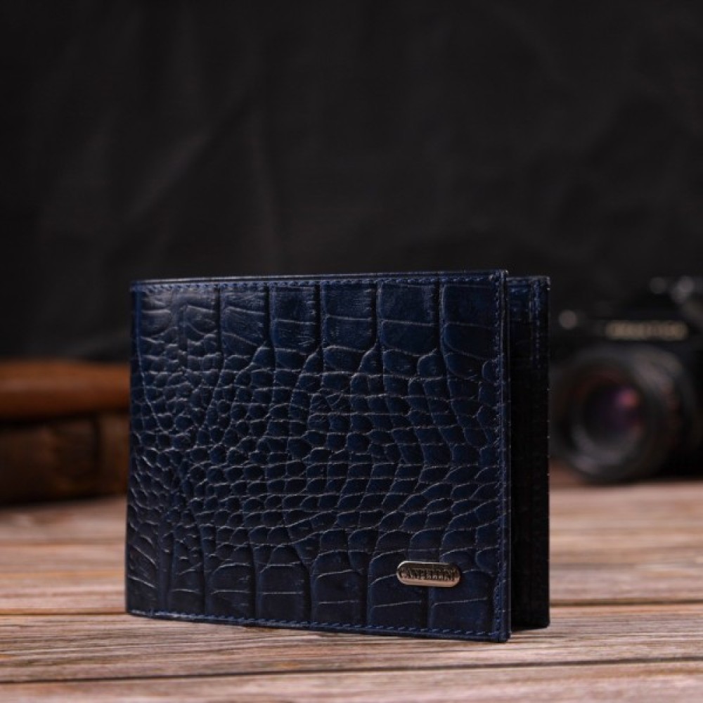 Модний чоловічий гаманець з натуральної шкіри з тисненням під крокодила.
