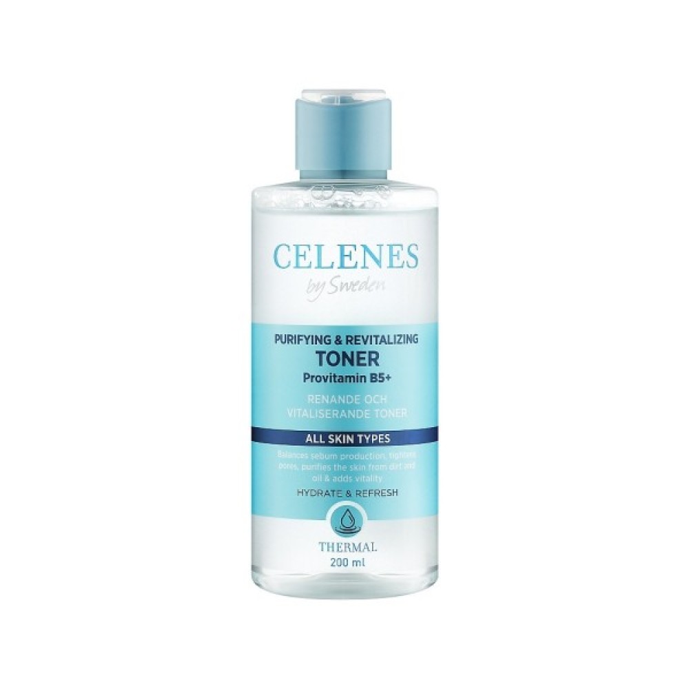 Термальний тонік балансує вироблення шкірного сала, звужує пори, очищає шкіру від бруду і масла і надає життєвої сили. Термальний тонік Celenes, що очищає і відновлює, очищає шкіру від бруду, масла і надає свіжість завдяки своєму тепловому вмісту. Pinus Sylvestris допомагає підтримувати баланс pH шкіри. Це допомагає зменшити появу пір та підтримувати баланс шкірного сала, стимулюючи відновлення клітин шкіри. Провітамін 5, що міститься в ньому, забезпечує необхідну шкіру вологу.