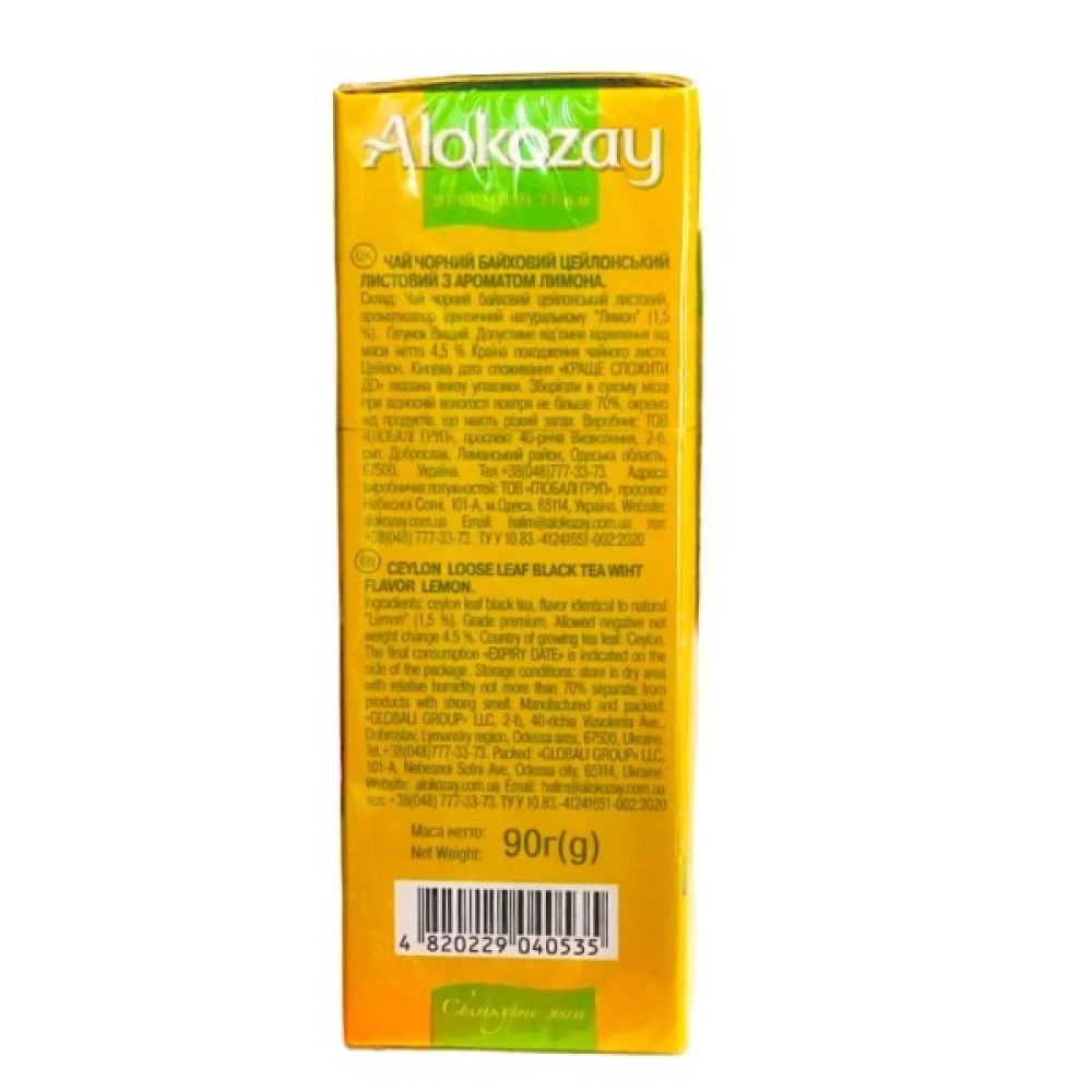 Чай чорний Alokozay з ароматом лимона (90 г) — це підбадьорливий і тонізуючий напій, що дарує заряд позитиву на весь день. Ідеальне поєднання терпкості добірного цейлонського чаю та приємної цитрусової кислинки.