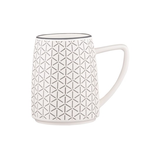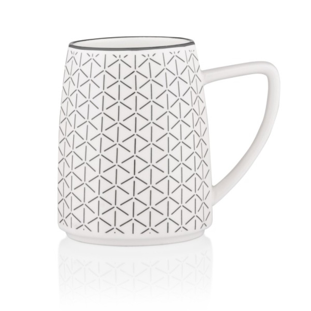 - Геометричний візерунок надає чашці елегантності та сучасного вигляду.