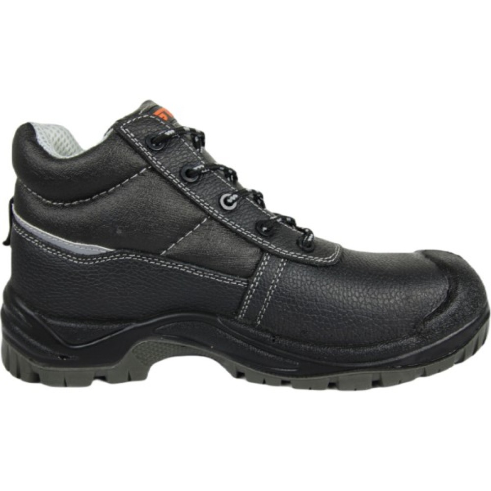 Будівельні черевики GTM SM-071 - зручна робоче взуття для повсякденного використання з захисним сталевим носком, який витримує ударне навантаження до 200 Дж. Верх черевик виготовлений з натуральної шкіри і доповнений спеціальними світловідбиваючими вставками. Підошва: поліуретанова, двошаровий, лита. Має діелектричну, антистатичну і антиковзну обробку.