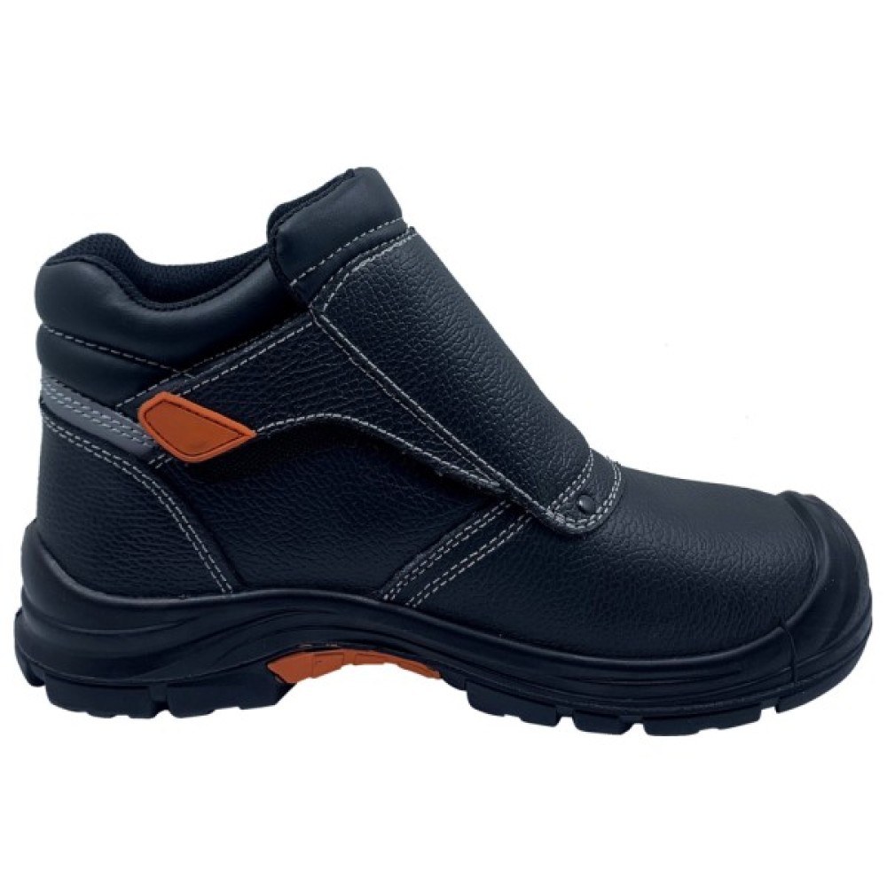 Черевики зварювальника GTM SM-070-професійна робоче взуття для повсякденного використання з захисним сталевим носком, який витримує ударне навантаження до 200 Дж. Верх черевик виготовлений з натуральної шкіри і доповнений спеціальними світловідбиваючими вставками. Зовнішній клапан для захисту від продуктів зварювання. Підошва: поліуретанова, двошаровий, лита. Має діелектричну, антистатичну і антиковзну обробку. Стійка до впливу масел, палива, агресивним розчинів кислот і лугів з концентрацією до 20% і контактному нагрівання до 300 С. Носок в черевиках має додаткову сталеву вставку, яка витримує ударне навантаження до 200 Дж. Енергопоглинаюча устілка з прошивкою проти ковзання. Антипрокольна сталева устілка із захистом до 1100 Н. Антикорозійний металева фурнітура і посилений шнурок