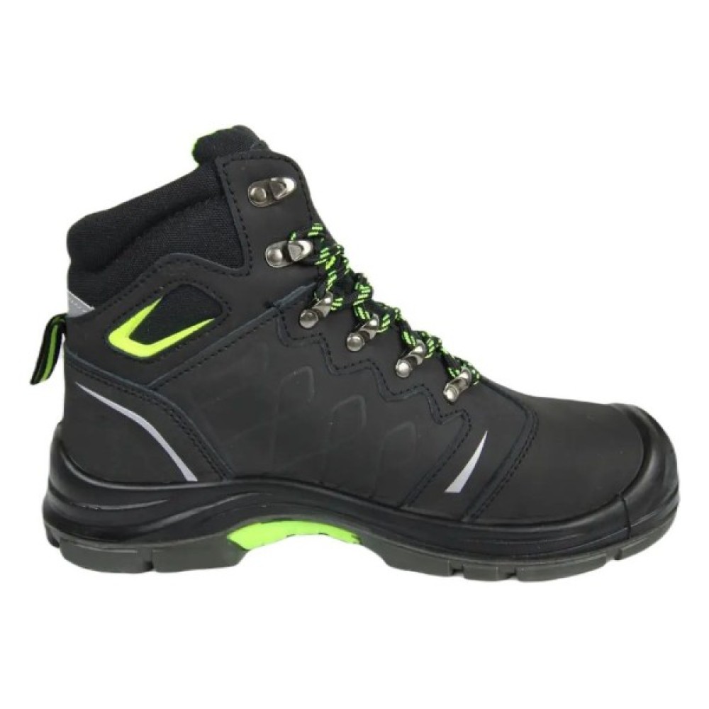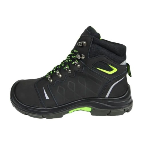 Високі будівельні черевики SM-076 - зручна робоче взуття для повсякденного використання з захисним сталевим носком, який витримує ударне навантаження до 200 Дж. Верх черевик виготовлений з натуральної шкіри і доповнений спеціальними світловідбиваючими вставками. Підошва: поліуретанова, двошаровий, лита. Має діелектричну, антистатичну і антиковзну обробку. Стійка до впливу масел, палива, агресивним розчинів кислот і лугів з концентрацією до 20% і контактному нагрівання до 110 С. Носок в черевиках має додаткову композитну вставку, яка витримує ударне навантаження до 200 Дж.