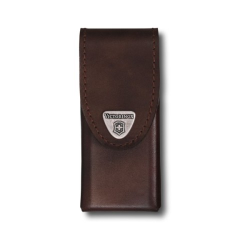 4.0832.L – вертикальний чохол з надійною фіксацією на ремені. Він міцний та практичний. Має логотип Victorinox на клапані. Чохол виготовлений з коричневої натуральної шкіри із застібкою-липучкою Velkro.