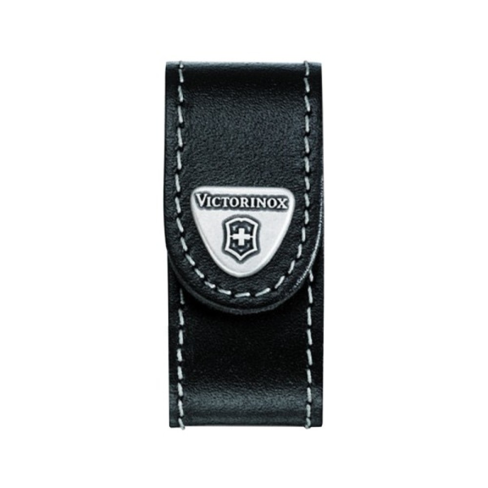 Чохол на пояс Victorinox 4.0518.XL, зі шкіри, чорний, для ножів MiniChamp (58 мм). Чохол Victorinox 4.0518.XL – являє собою компактний футляр для зберігання складних ножів Викторинокс довжиною 58 мм, зокрема для моделей з серії Mini Champ. Футляр Викторинокс виконаний у благородній, класичному дизайні, що робить його актуальним аксесуаром для людей, що віддають перевагу діловий стиль одягу. Для виготовлення Victorinox 4.0518.XL застосовувалася натуральна шкіра щільного сорту, покрита спеціальними захисними складами, що запобігають розрив, деформацію та інші механічні пошкодження чохла. Крім того, таке покриття ефективно відштовхує вологу. Очистити поверхню даного типу можна будь-якими традиційними засобами, без ризику пошкодити чохол. Традиційна фірмова символіка знаменитого швейцарського бренду Викторинокс відображається в вигравіруваному вигляді на сталевому шильде, міцно прикріпленому до шкіряного чохла.