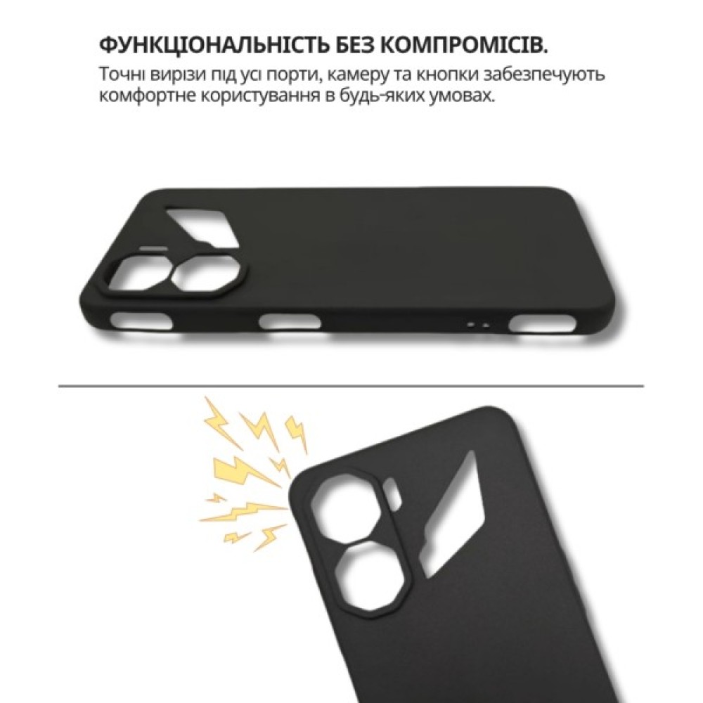 Чохол легко встановлюється, щільно прилягає до поверхні смартфона, не залишаючи повітряних зазорів, які могли б накопичувати пил, бруд або вологу. Легкий і непомітний, він не додає зайвого об'єму чи ваги вашому пристрою, забезпечуючи надійний захист від ударів, пошкоджень і вологи.
