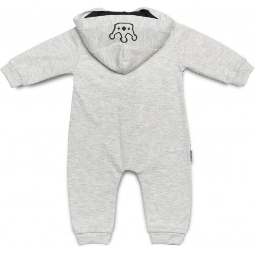 Симпатичний повсякденний світло-сірий комбінезон «KING» на блискавці з капюшоном, з якісного турецького трикотажу - незамінний одяг для вашого малюка.