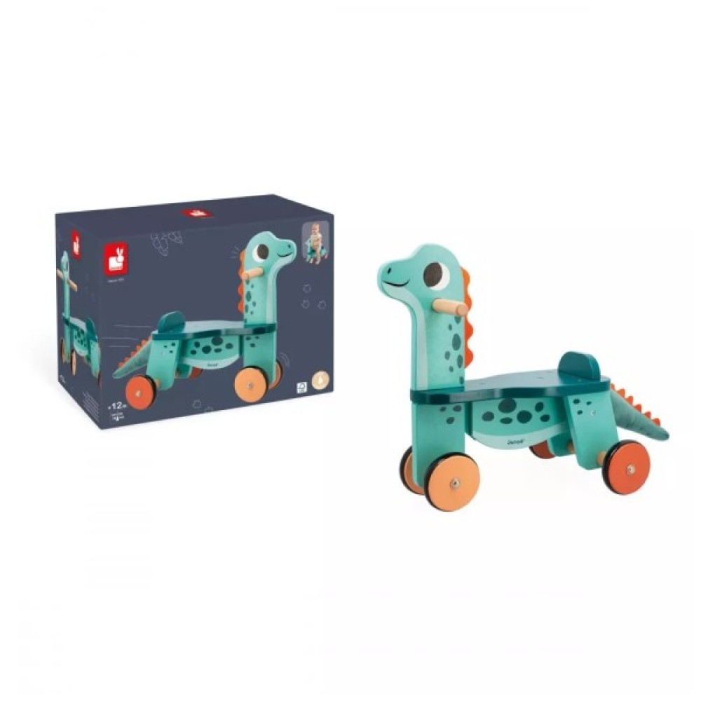 Обережно, їде справжній динозавр, якого осідлав сміливий малюк! Динозавр гарний та барвистий, у яскравому блакитно-оранжевому кольорі. Його мила посмішка підкорює як найменших, і дорослих. Красивий, незвичайний та яскравий Дерев'яний толокар біговів Janod Діно Портозавр (J05828) стане ідеальним першим транспортом малюка від 12 місяців. Виготовлений повністю з дерева, має барвистий дизайн і стійку конструкцію. Дитині буде весело та безпечно освоювати толокар, та вдосконалювати свої рухові навички, такі як уміння тримати рівновагу, баланс, координацію рухів. У толокара 4 стійкі колеса, передні рухаються одночасно з обертанням голови для зручної можливості повернути. На колесах силіконові накладки можна їздити вдома і на вулиці, завдяки накладкам динозавр їде тихо і не дряпає підлогу. У динозавра зручне сидіння заввишки 21 см. Для більш захоплюючого проведення часу у динозавра м'який хвостик, що додає веселощів у поїздці. Хвіст знімається, його легко чистити. Динозаврик екологічний, безпечний має сертифікат FSC. Вперед, відштовхуйся ніжками, і назустріч пригодам!