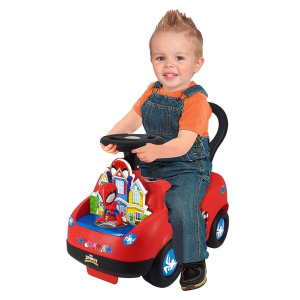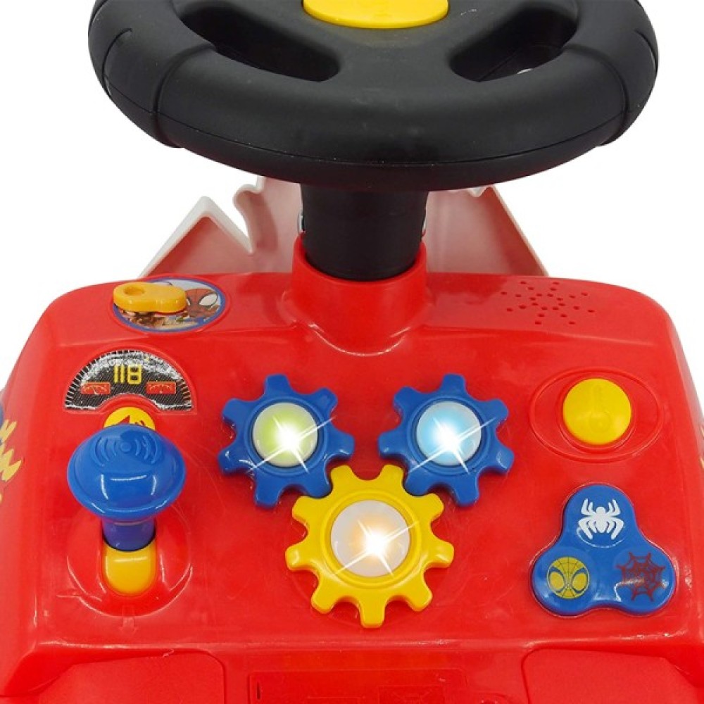 Яскравий чудомобіль, виконаний в стилі популярного мультсеріалу про Людину-Павука студії MARVEL «Спайді та його дивовижні друзі», розважить дитину миготливими вогниками, приємними мелодіями, кумедними звуками, а також реалістичними звуками двигуна та сигналу.