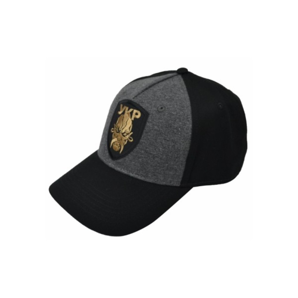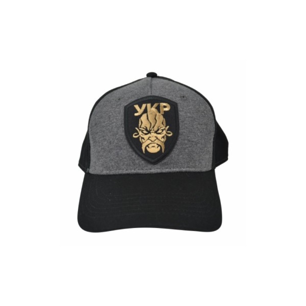 Кепка має широку налобну панель і 4 симетричних клини. Передня панель – сірого кольору, козирок, бічні й задні панелі – чорного.