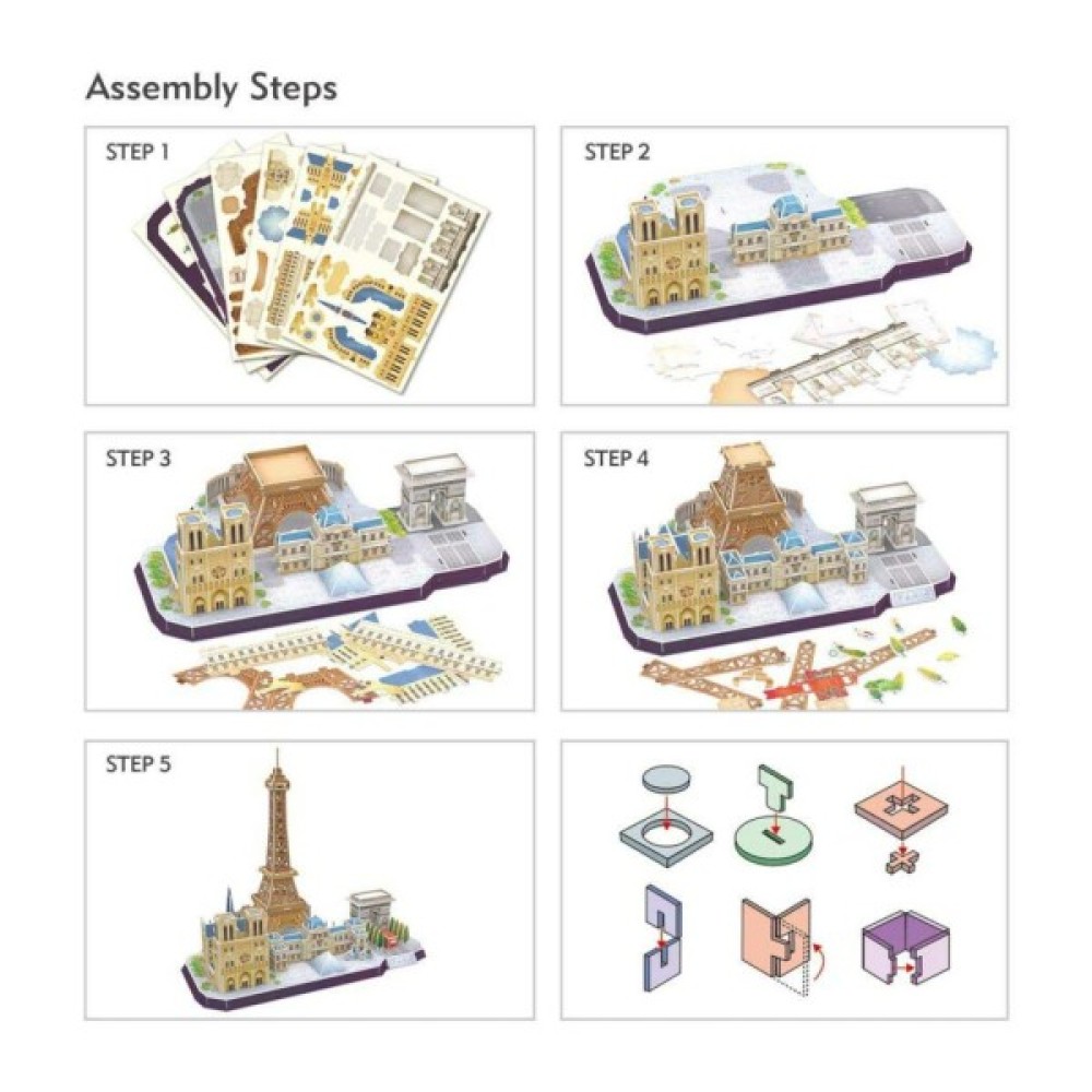Дитячий конструктор CubicFun познайомить школярів зі світовими столицями. Набір CITY LINE PARIS відкриває чарівний світ Франції. Під маленькими пальцями будуть оживати все знакові пам’ятки. Крок за кроком на столі виростуть Ейфелева вежа, Тріумфальна арка, Лувр і Собор Паризької Богоматері. Фігурки велосипедистів роблять композицію затишній і душевної. Комплект з 3D-конструктором від CubicFun це завжди яскраві та захоплюючі конструкції, що збираються з задоволенням. До нового хобі пристрастяться діти і дорослі. Купити набір можна для хлопців, які вивчають французьку або цікавляться країнами. Головоломка сподобається і батькам, які мріють або вже бував в Парижі. Переваги: приємне і розвиваюче дозвілля збагачує знання про країни, міста і особливості архітектури розвиває логіку, креативність і конструкторські здібності. Збирається головоломка з кольорових деталей. Картинка швидко оживає, відкриваючи погляду красу французької столиці. Хлопчикам набір сподобається за рахунок продуманих деталей і елементів з’єднання. Набір розвине інтерес до архітектури і будівництва. Дівчаткам сподобається креативний підхід. У магазині дитячих конструкторів знайдеться 3D-пазл для кожного.